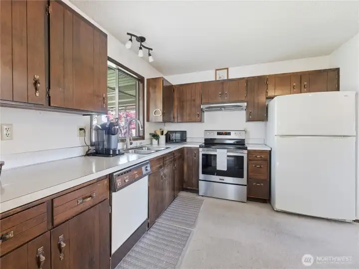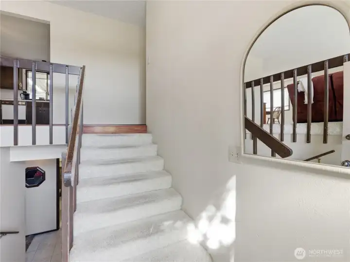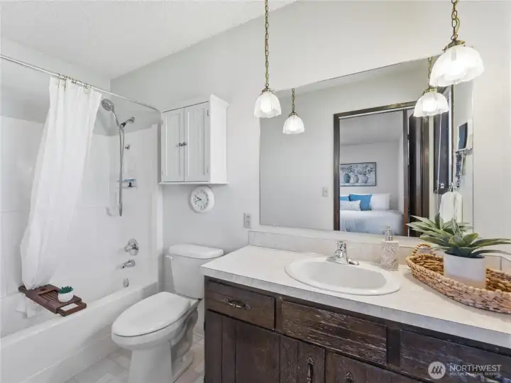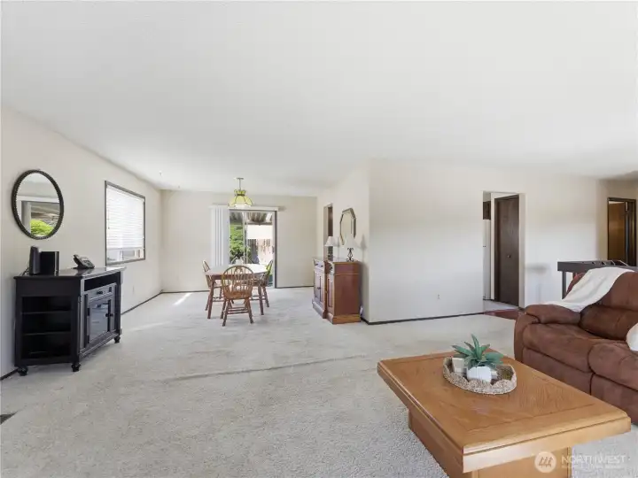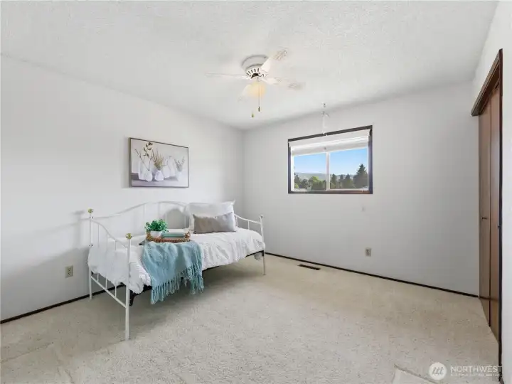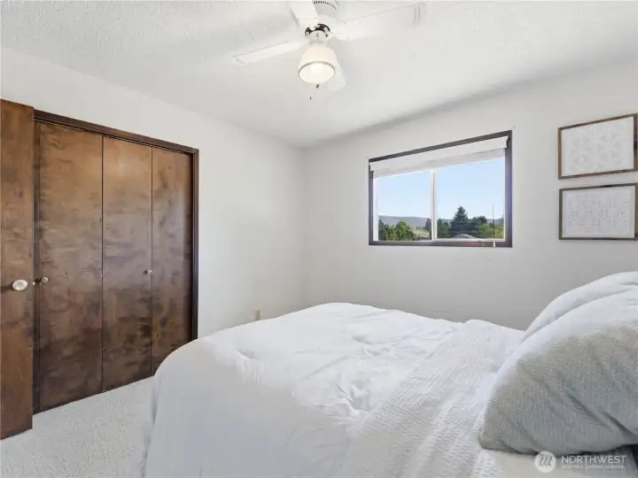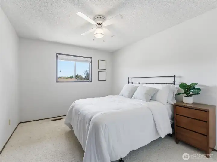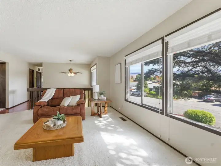 Tucked in a quiet, beautiful neighborhood, this midcentury home offers space, views, and endless potential. Upstairs features a light-filled living area with large windows that flows seamlessly into the dining space—perfect for everyday living and entertaining. The kitchen offers ample cabinetry and is ready for your personal touch.Down the hall are two generously sized guest bedrooms, a full bathroom, and a primary suite with its own full bath. The lower level adds flexibility with a spacious bonus room—ideal for a second living area, rec room, or additional bedroom—plus a convenient half bath and laundry space.Outside, the backyard truly shines. Over a quarter acre on IRRIGATION, you’ll love the large covered patio and sweeping valley views—perfect for relaxing or hosting. Complete with a true two-car garage and extra storage, this home is full of opportunity in a peaceful setting.
