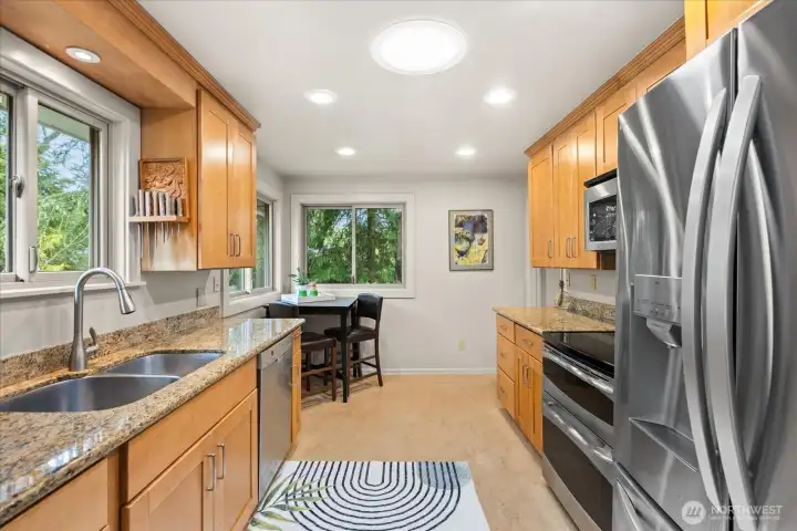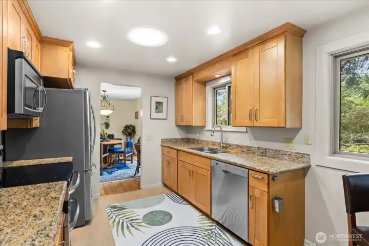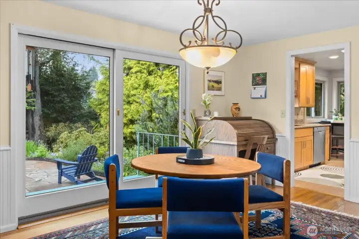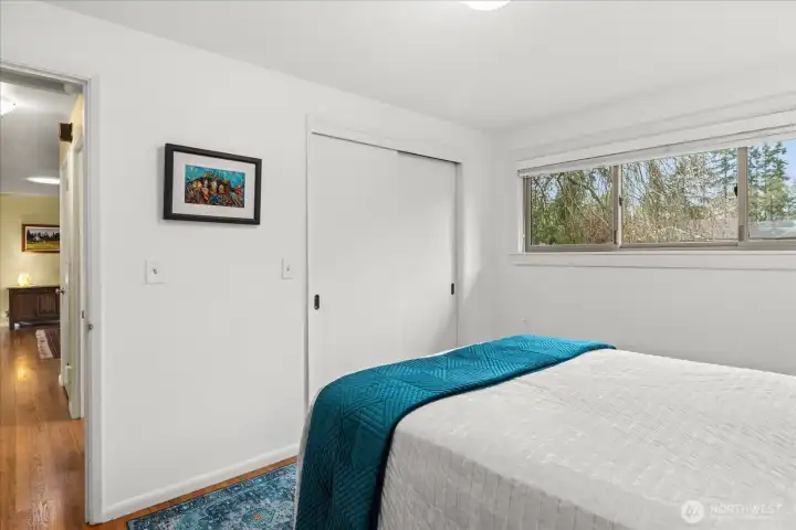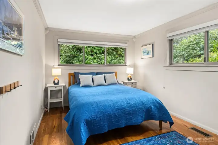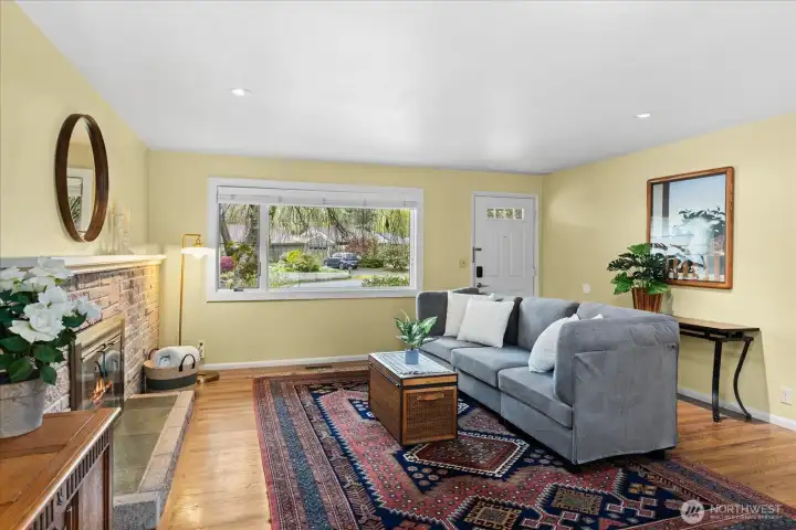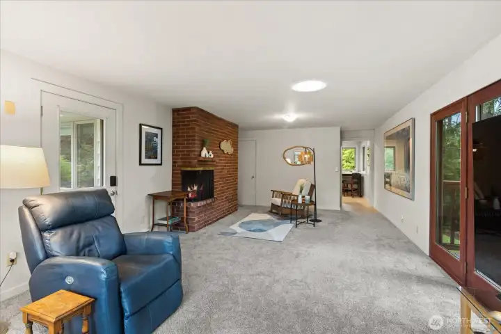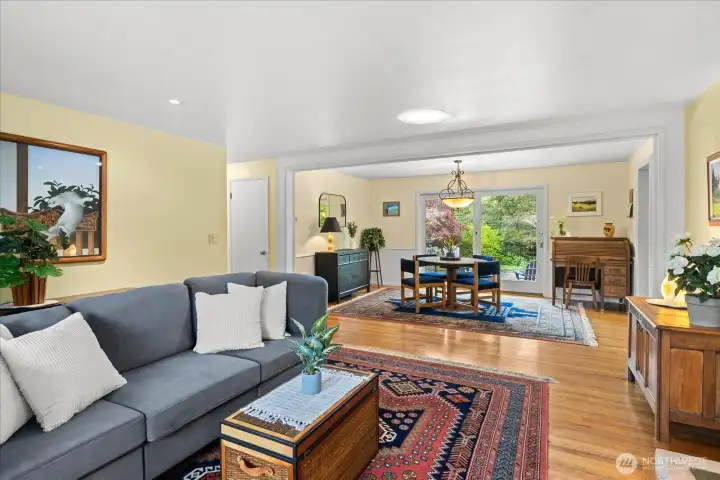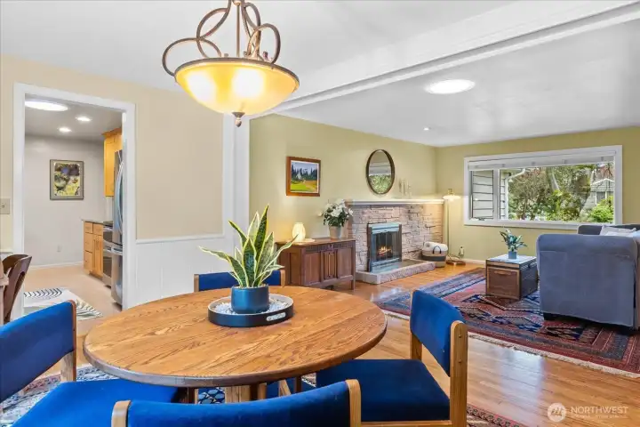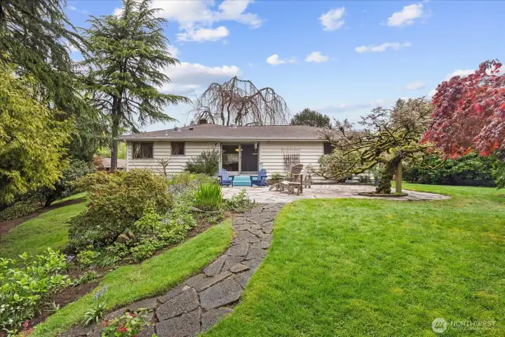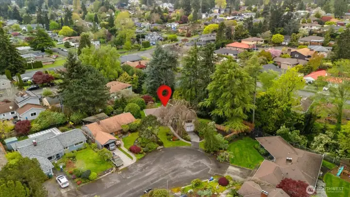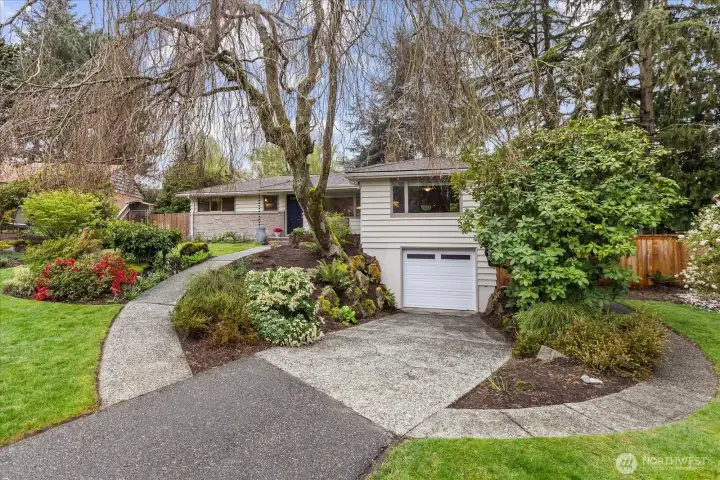 Tucked at the end of a quiet cul-de-sac & framed by a graceful weeping beech, this Green Arbor charmer delivers rare in-city privacy on a gorgeous 13,000+ sq ft lot. Original HW floors, 2 wood-burning fireplaces & large sliding glass doors set a warm, inviting tone throughout. The kitchen flows into a spacious bonus/rec room, perfect for gathering, hobbies, or additional living space. Both bedrooms are generously sized w/built-in storage, & the remodeled bath adds a fresh touch without losing classic character. Out back, a fully fenced yard w/flagstone patio & mature landscaping feels like a private park - ideal for pets, play & entertaining. Recent upgrades include a newer 40-yr roof (2022), heat pump w/A/C (2023), solar tubes, fresh interior paint & refreshed patio. High-end Andersen windows throughout. Basement adds laundry, storage, shop space, garage access & ample room to grow. All of this just minutes from Carkeek Park, Crown Hill, Ballard & easy downtown commutes. A rare mix of charm, flexibility & value in one of Seattle's most convenient but secluded neighborhoods. Pre-Inspected.