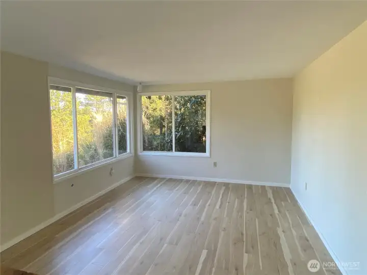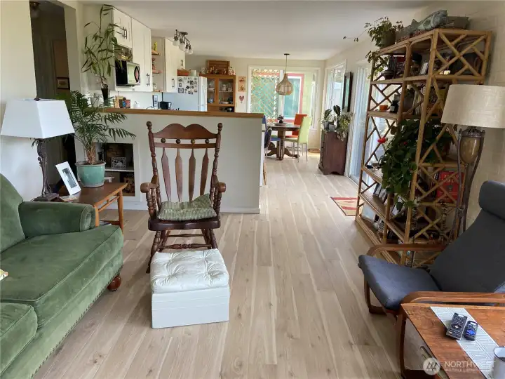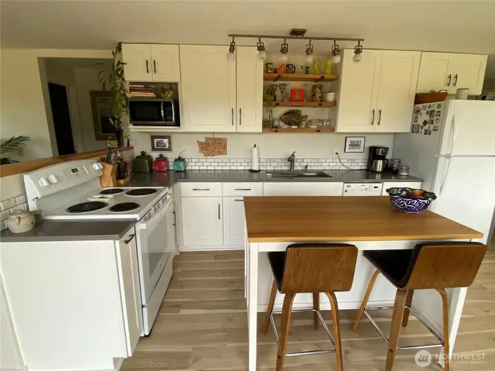 Enjoy the tree top view and sunsets from the bank of west facing windows in this open concept, single level home. Hear the ocean roar - which is just a short stroll away. Many updates in this 2-bedroom 1 bath home. New kitchen with quartz counter tops and nice soft close cabinets, kitchen island, range and dishwasher. Lovely tiled bathroom with heated floors. Home sits on 1/3 of an acre with a 'secret garden' feel to the wooded area of the property. Or you can enjoy your time on the west facing, full length deck.