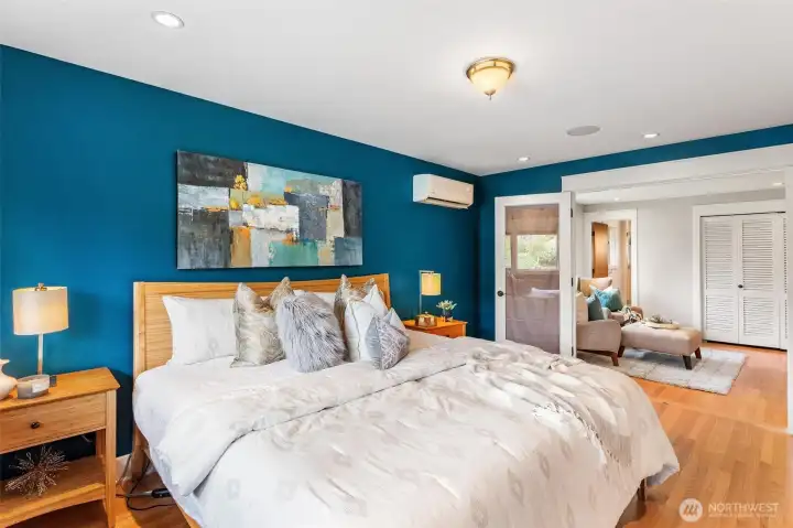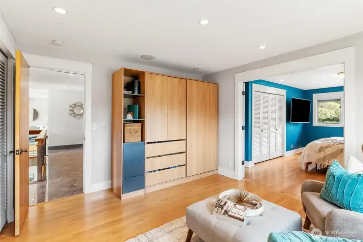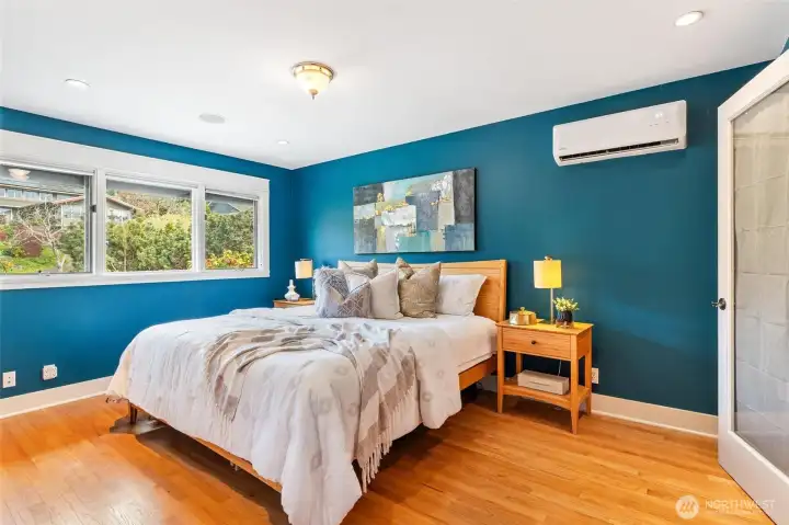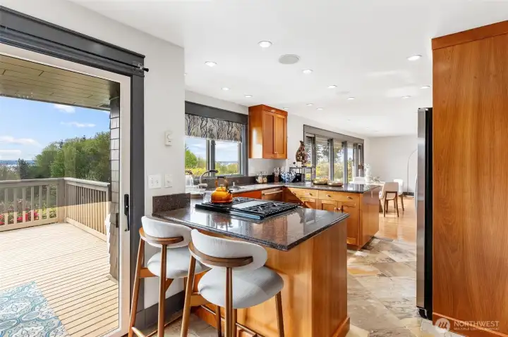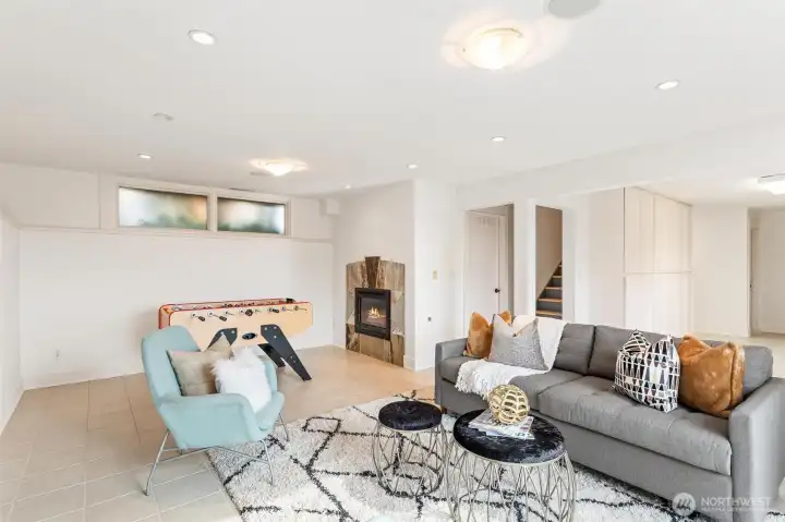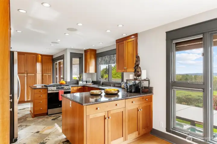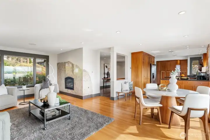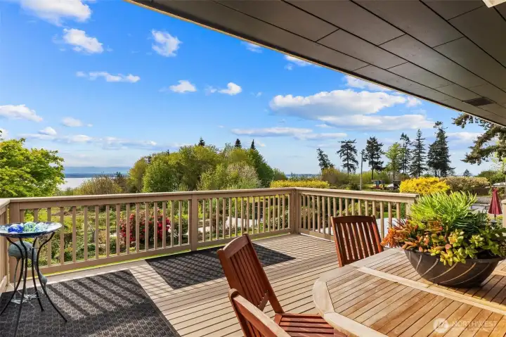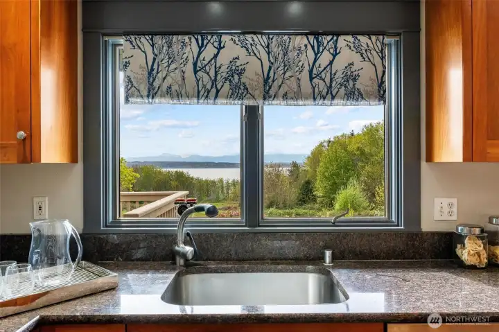 Absolutely spectacular Puget Sound and Olympic Mountain views take center stage in this timeless mid-century home, set in the peaceful Woodway community. Expansive floor-to-ceiling windows bathe the main living and dining areas in natural light, showcasing rich hardwood floors and creating a bright, welcoming atmosphere.The open kitchen features custom cabinetry, granite counters, stainless appliances, slate flooring, and a cozy eating nook. The main-level primary suite connects to a flexible adjoining room—ideal for an office or sitting area—along with a beautifully updated spa like bath featuring heated floors and a custom limestone shower, all with a view. A second bedroom and 1/2 bath complete the main level.The daylight lower level expands the home’s livability with a generous family room centered around a gas fireplace, along with a bedroom and bathroom—perfect for guests or multi-generational living.Outside, enjoy a truly special setting with established fruit trees and thriving berries, complemented by a covered swim spa for year-round enjoyment. All are set within a thoughtfully designed, easy-care garden originally created by John Guenther—known for his passion for gardening and his professional bowling career—adding a unique sense of history and charm. A rare blend of view, character, and lifestyle.