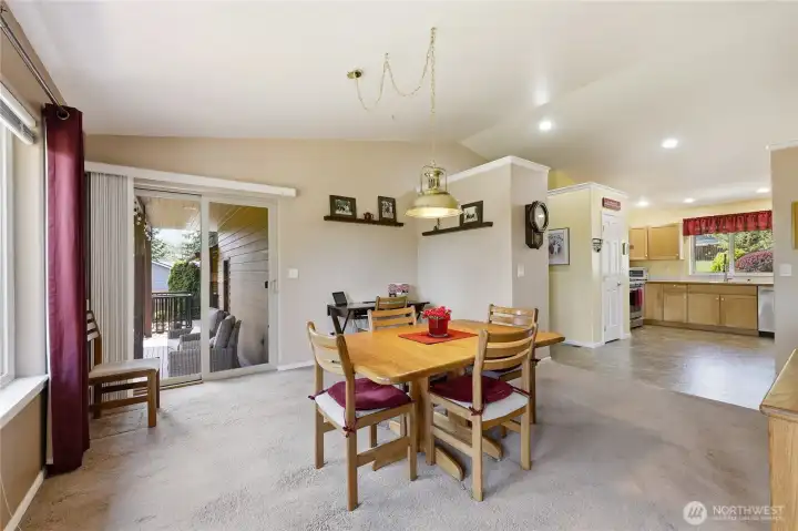 Dining area with multiple sliders onto the large deck.