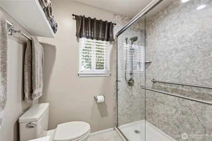 Hall bath with bath/shower combination.