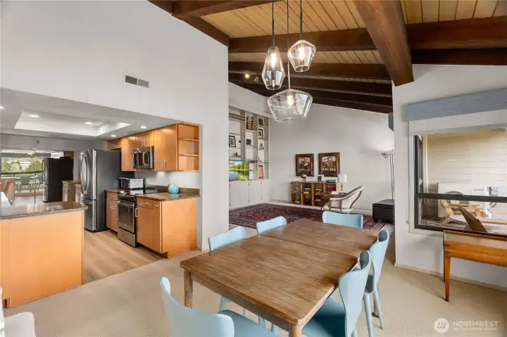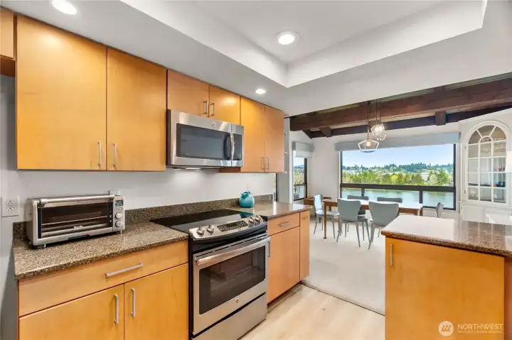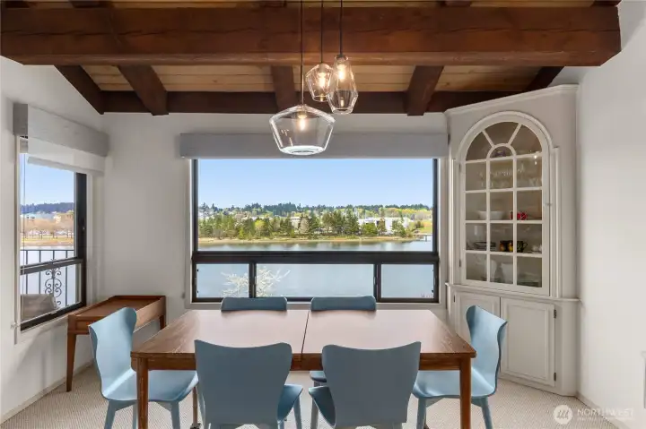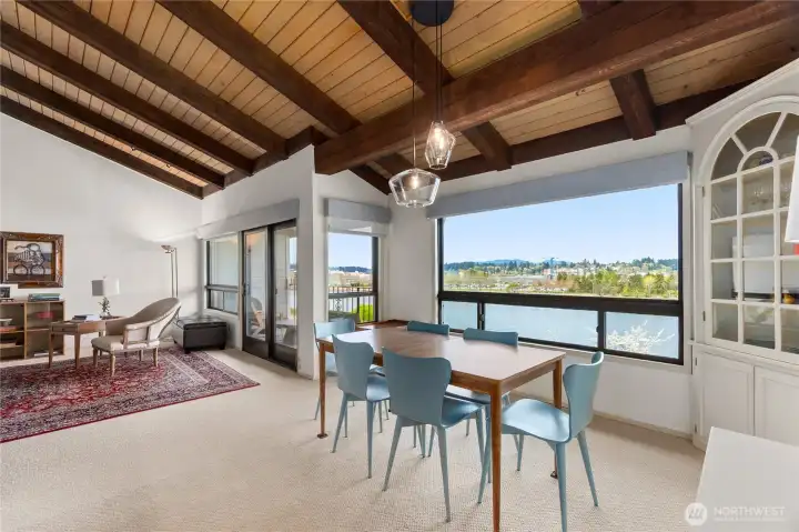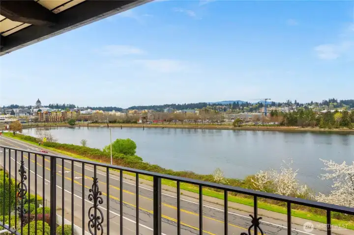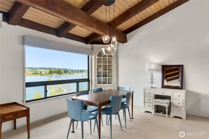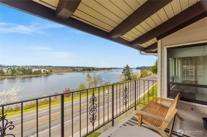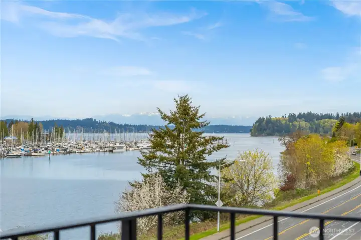 East Bay Harbor - Olympia's premier condominium, captures views like no other. This particular residence is a rare top floor unit, with soaring, beamed vaulted ceilings, and capturing the most stunning views of the marina, city, and mountains. Light and bright, this unit boasts 50k in recent upgrades including new windows, new air conditioning, new quality luxury vinyl flooring. Sit by the cozy fireplace or step out on the veranda and enjoy the views. Perfect for entertaining (gas BBQ stub included!). Updated kitchen with granite countertops, stainless appliances, and abundant storage in walk in pantry. Dues include water, sewer, garbage, cable, and more! The building is extremely well maintained (stunning newer metal roofs on all buildings) and has a highly rated association management team. Let us not forget there is a community pool and hot tub to enjoy when entertaining guests. Come and join the "no maintenance" club, and enjoy the freedom you have earned.