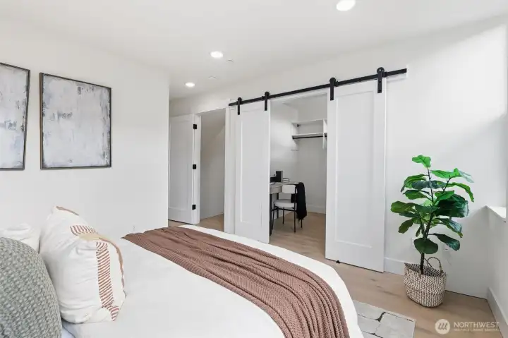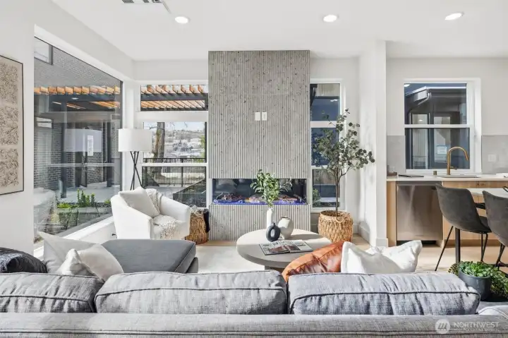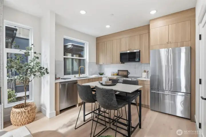 Set within the sought-after Harbor 26 community, this thoughtfully designed home delivers efficient, design-forward living in the heart of Eastlake. The open main level maximizes every inch with a seamless flow between kitchen and living spaces, elevated by modern finishes and clean, contemporary lines. The bedroom retreat is paired with a well-appointed primary bath featuring refined finishes and a streamlined layout that prioritizes both function and comfort. A spacious walk-in closet offers added versatility, easily doubling as a dedicated workspace or flex area. Above, a private rooftop deck provides a quiet escape with glimpses of Lake Union and the surrounding cityscape. Located in a gated community just steps from the shoreline, this home delivers low-maintenance urban living without compromise. Built by DEP Homes Eastlake, a name synonymous with quality and thoughtful design.
