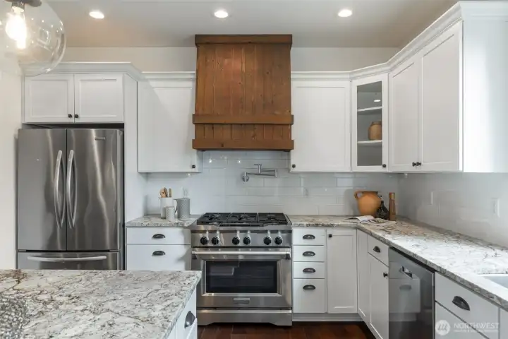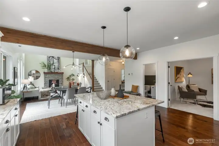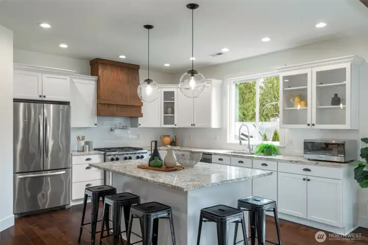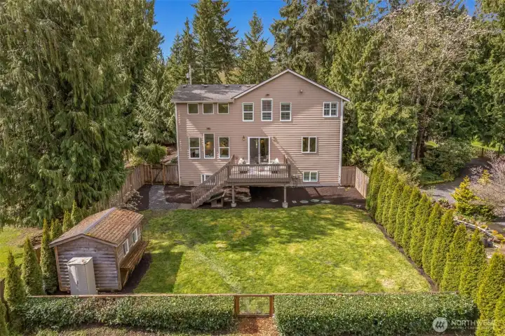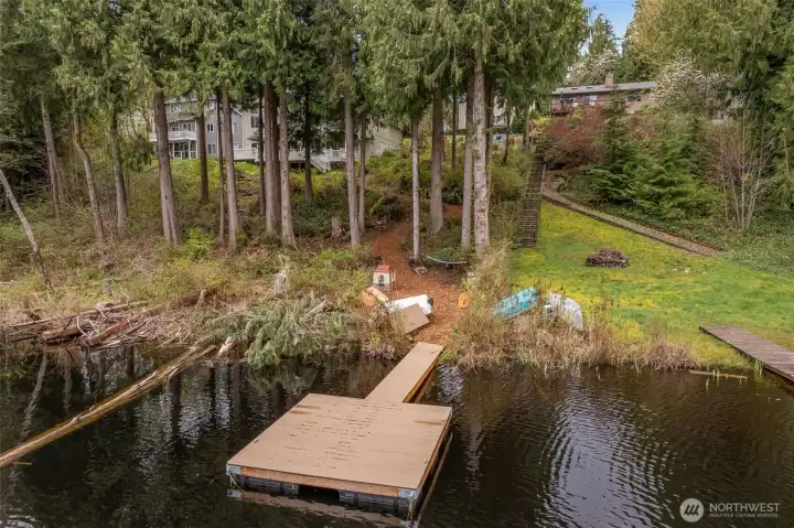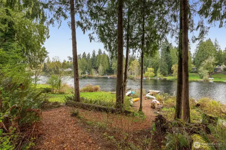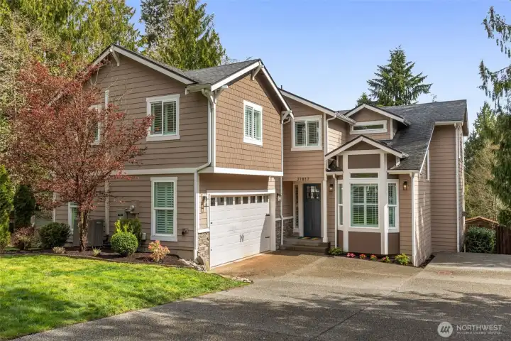 LAKE LIVING! Retreat at home on 60 feet of sparkling Lost Lake shoreline and experience lake living at its finest in this exceptional custom NW Craftsman. Designed for both comfort and entertaining, the inviting great room showcases a two-chef granite kitchen, cozy gas fireplace, and walls of windows framing serene lake and territorial park views. The main level is as functional as it is beautiful, featuring two private offices, a mudroom with garage access, and powder room. Upstairs, unwind in the spacious primary suite with tranquil water views, a massive walk-in closet, and a luxurious ensuite. Three additional bedrooms, a full bath, and a convenient laundry room complete the upper level, while a 600 SF finished bonus room with walk-in storage below offers endless flexibility. Soaring ceilings and plantation shutters enhance the home throughout. Step outside to dinner al fresco on the deck with a fully fenced, level backyard where memories are made. Wander down the path and gather around the firepit, relax on the peaceful side deck, or enjoy your private natural shoreline. Launch a kayak from your floating swim platform or cast a line in this picturesque setting surrounded by nature. A 2-car garage and extended driveway provide ample space for vehicles and toys. Ideally located just minutes from Woodinville, this thoughtfully refreshed home with new carpet, fresh paint, and stylish lighting is a rare turnkey waterfront opportunity. Come experience it for yourself.