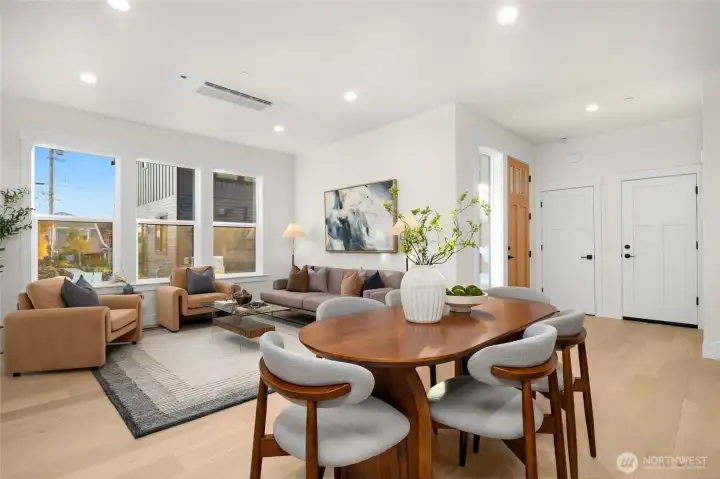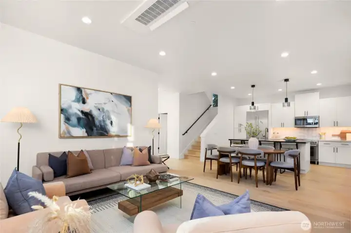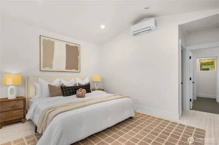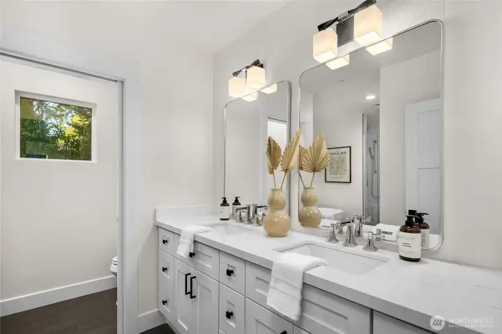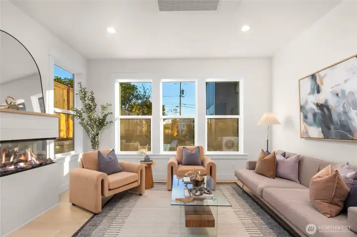 Stunning 3-cottage development in Kirkland, where thoughtful design meets everyday comfort. Cottage 2 offers 3 beds, 3 baths and 1,584 sq ft. The open great room features a sleek linear fireplace and a bright kitchen with Bosch appliances, quartz countertops, and a large island with seating. Upstairs, vaulted ceilings and huge windows fill the space with light. The primary suite offers heated floors, soaking tub, oversized shower, and built-in walk-in closet. Laundry room w/sink and LG washer/dryer. Fully insulated oversized garage w/EV charger & storage. Outdoor sitting area. Located in a very sought-after Kirkland neighborhood and excellent school district, this home offers modern living, smart functionality, and timeless Northwest style.