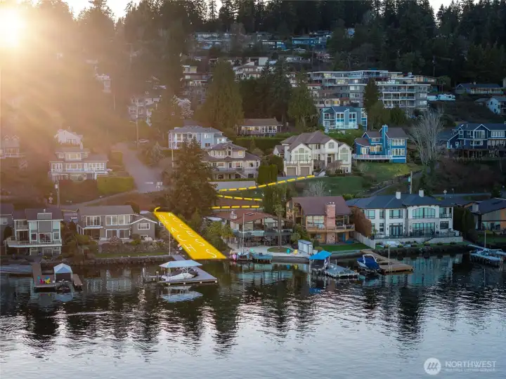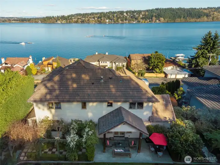 Immediate lake access, sweeping Lake Washington, Cascade and Mt. Rainier views, paired with luxury and the ideal layout, this custom-built residence offers a rare Sheridan Beach opportunity! With over 5,000 sqft, soaring ceilings throughout and walls of windows, the home is beautifully designed to incorporate views into daily living. The chef’s kitchen with oversized island and walk-in pantry opens to expansive gathering spaces and a stunning wraparound view deck. Level front and back yards - a true rarity in Sheridan Beach - complemented by a private garden retreat and covered back patio with ceiling-mounted heater for year-round enjoyment. Upper-level primary suite features a sitting area, sensational views and large walk-in closet. A private-entry MIL suite below with no-step access and second kitchen provides flexibility for guests, extended living or possible rental use. Direct access to the Burke-Gilman Trail just outside the driveway awaits your daily dose of walking or biking or simply connecting with nature. Feel the special energy of watching activity on both the lake and the trail. Convenient to Seattle and the Eastside, within the stellar Shoreline School District, and eligible for associate membership to the Sheridan Beach Club. Best of all, direct lake access just 30 seconds from the house through a secluded public access point just in time for summertime! Don’t miss this magical lifestyle of Sheridan Beach living.