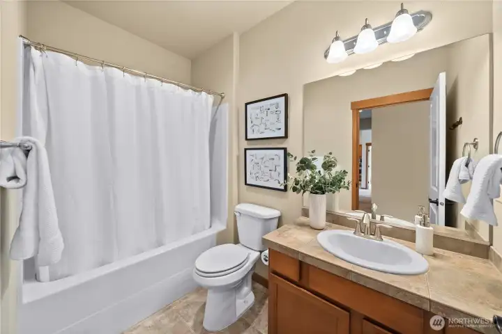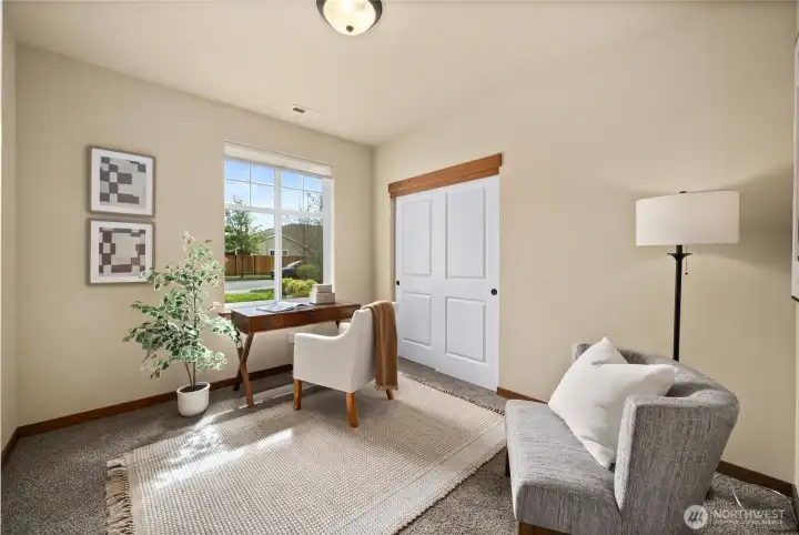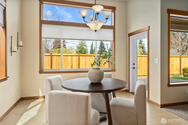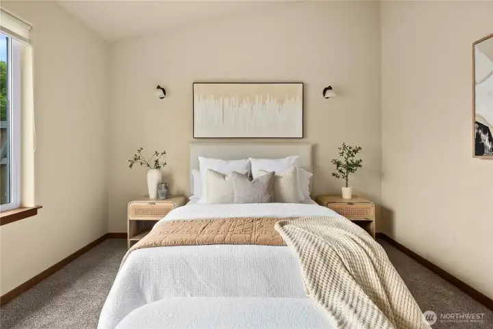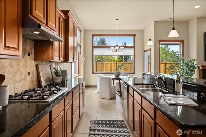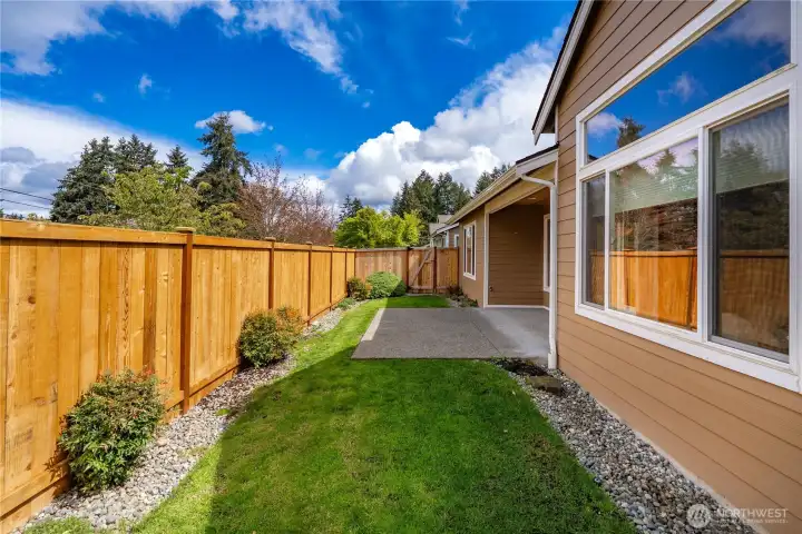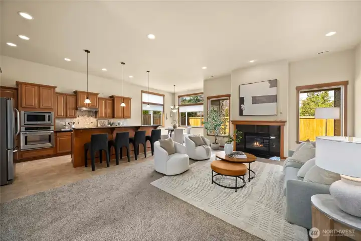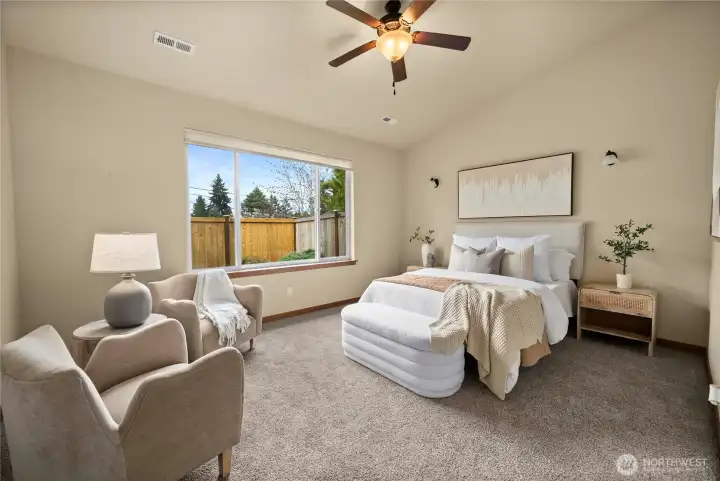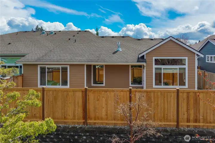 Welcome to The Boulders, in the heart of University Place—a highly sought-after enclave of meticulously maintained homes. This beautifully designed single-level residence offers 1,737 square feet of effortless living with not a stair in sight. Step inside to a light-filled, open-concept layout featuring soaring ceilings and oversized windows that create an inviting, airy atmosphere. Fresh new carpet pairs seamlessly with tile flooring, while rich dark wood cabinetry and granite countertops add a touch of elegance throughout the well-appointed kitchen. A large central island with bar seating, gas range, and walk-in pantry flows easily into the adjoining living and dining areas—perfect for both everyday living and entertaining. The spacious primary suite offers a private retreat with its own bathroom, complemented by a second bedroom, a generous laundry room, and a versatile third bedroom or office with French doors. Enjoy the fully fenced, private back patio—ideal for relaxing or hosting—along with the convenience of a two-car attached garage. Located within top-rated University Place schools and just minutes from Chambers Bay, Trader Joe’s, Whole Foods, and a variety of local dining and shopping options, this home combines comfort, style, and an unbeatable location.
