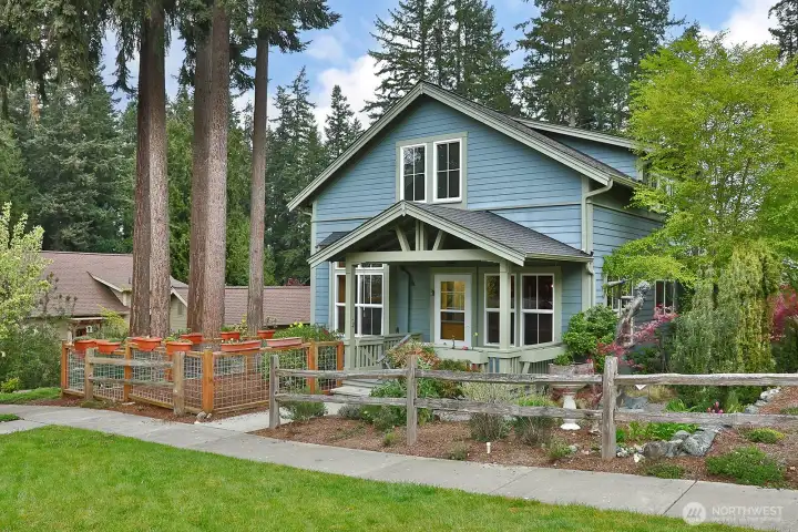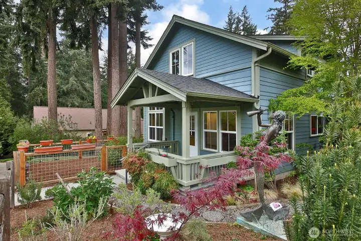 A covered front porch welcomes you on the street side.