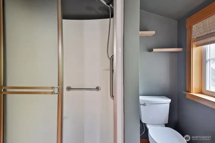 Main floor bathroom with laundry.