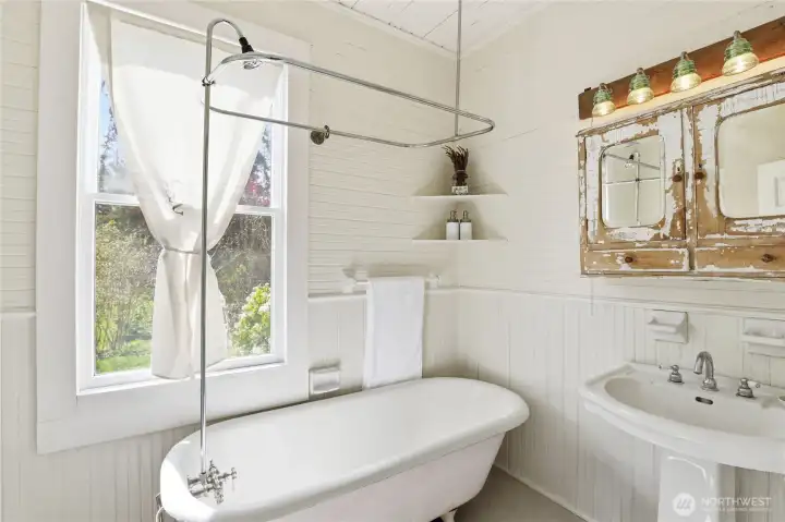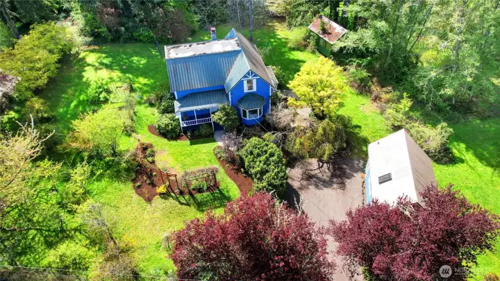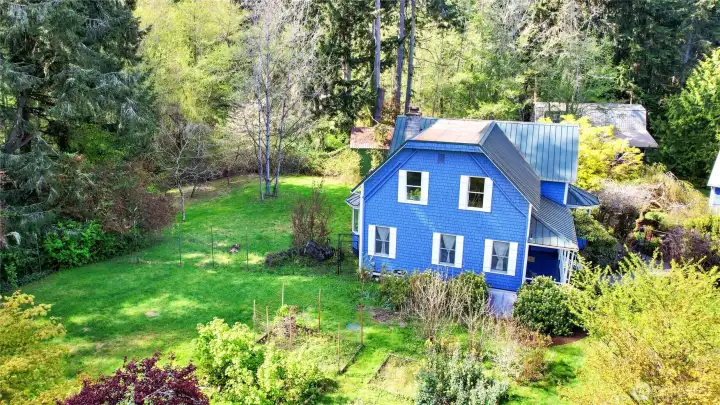 Experience a rare fusion of heritage and horticulture on this 1.6-acre Bainbridge Island sanctuary. Centered by a stunning 1906 home, this estate features 4 bedrooms and a guest house, balancing historic soul with master-class modern design. The home is a curated gallery of high-end finishes. The primary bath: A true masterpiece featuring hand-crafted tile by artist Cha-Rie Tang, Victoria and Albert bathtub, Watermark Brooklyn faucets, and Schoolhouse Electric lighting. The kitchen is designed for the culinary enthusiast with genuine marble countertops, and a signature Big Chill range. The grounds offer an unparalleled "farm-to-table" lifestyle. Harvest from an orchard of cherry, plum, apricot, pluot, apple, and pear trees, plus grape and kiwi vines. The berry harvest includes strawberry, raspberry, blueberry, mulberry, honeyberry, currant, and pineapple guava. Lush Japanese maples, vegetable beds, and roses in every color ensure fresh-cut flowers for your table year-round. Modern infrastructure meets peace of mind with zone heating (upstairs heat pump/furnace and separate downstairs furnace) and comprehensive earthquake retrofitting in the basement. A historic 1906 retreat for those who value art, nature, and island serenity. Mortgage savings may be available for buyers of this listing.