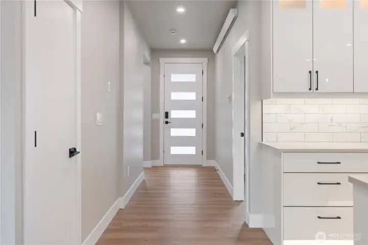 Hidden door disguised as cabinetry leading to laundry/utility room