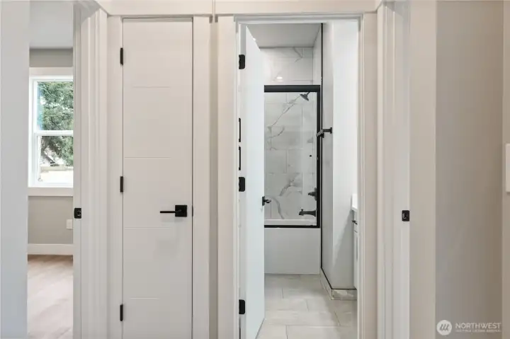 Secondary bathroom with tiled shower/tub combo and single vanity