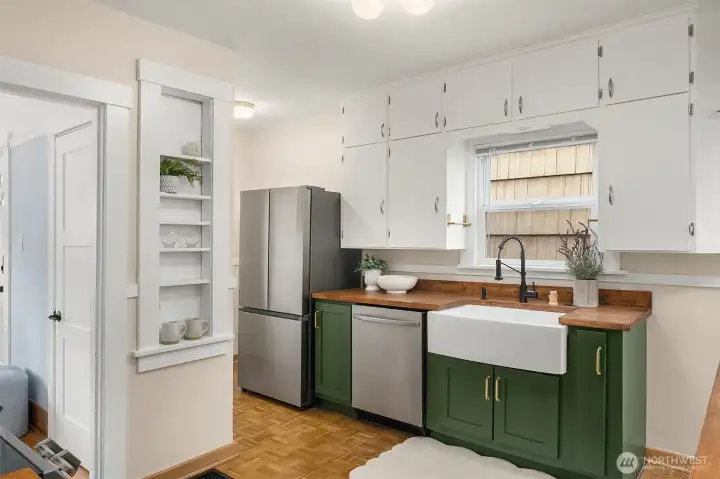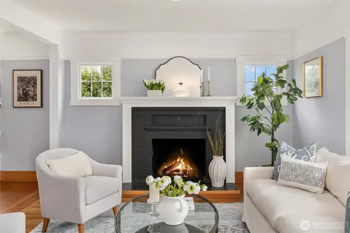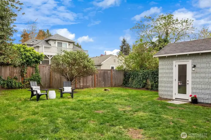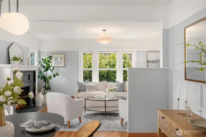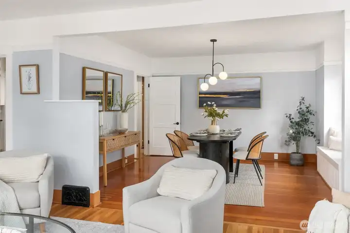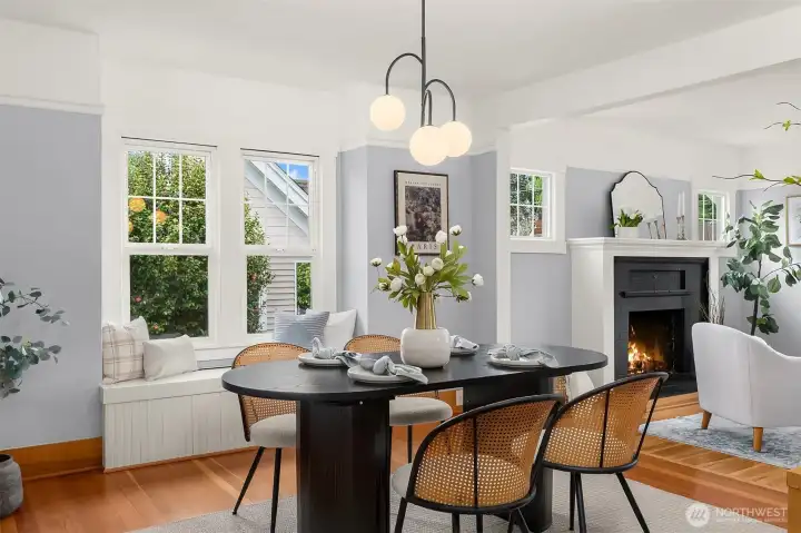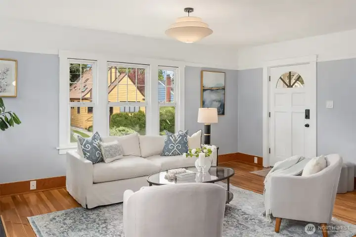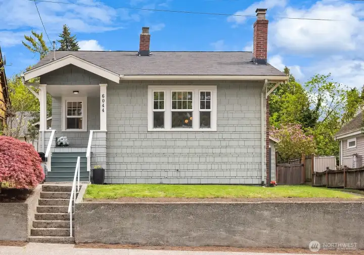 Sitting up off the street, this cheerful bungalow blends classic charm with thoughtful updates. Sunlight pours through updated windows, illuminating the spacious living and dining rooms and highlighting beautiful hardwood floors and tall ceilings throughout the main floor. Stay comfortable year-round with A/C and enjoy a remodeled bathroom designed with modern touches. The charming kitchen features new appliances, tasteful design upgrades and open shelving. Upstairs, a flexible space offers the ideal second bedroom, home office, or creative retreat. The unfinished basement boasts generous ceiling height and is ready to be transformed into additional living space—think another bedroom, bathroom, and/or media room. A detached garage has already been converted into a work-from-home office and gym space adding even more versatility. Set on a large level lot, the fully fenced yard provides plenty of room to relax, garden, play or to add a DADU potentially. With ample off-street parking and close proximity to the U Village, light rail, shops, and restaurants, this home offers both convenience and future potential. A true Ravenna gem with enviable proximity to everything!