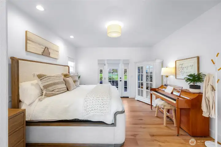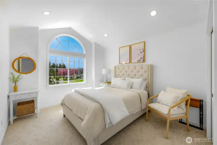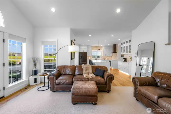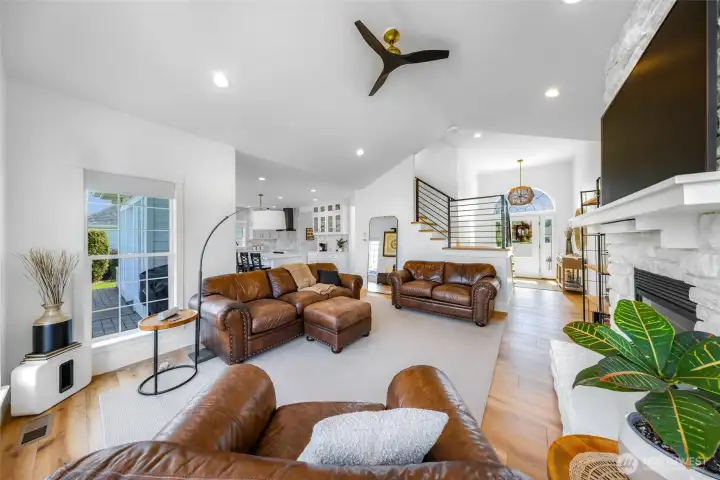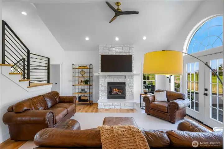 Stunning, immaculate home with great mountain views—where timeless design meets modern comfort. This beautifully appointed 2,374 sq ft residence offers 4 bedrooms, 2.5 baths, and a thoughtfully crafted layout in one of Lynden’s most desirable neighborhoods. From the moment you enter, you’re greeted by soaring vaulted ceilings, skylights, and an abundance of natural light that enhances the home’s open and inviting atmosphere. The expansive great room flows effortlessly into the kitchen and dining area, creating an ideal setting for both entertaining and relaxed living. The main-level primary suite offers a private retreat, complete with a walk-in closet and a well-appointed en-suite bath. Upstairs, three additional bedrooms and a full bath provide versatility for guests, office space, or hobbies. Throughout the home, pride of ownership is evident in the meticulous upkeep and quality finishes, complemented by ceiling fans and a distinctive wine cellar that adds a touch of sophistication. Step outside to a beautifully landscaped setting designed for enjoyment and relaxation, featuring a sprinkler system and hot tub—perfect for unwinding in a peaceful setting while taking in the surrounding views. Situated on a quiet, sidewalk-lined street just minutes from Lynden’s charming amenities, this is a rare opportunity to own a truly move-in ready home that combines luxury, comfort, and timeless appeal.