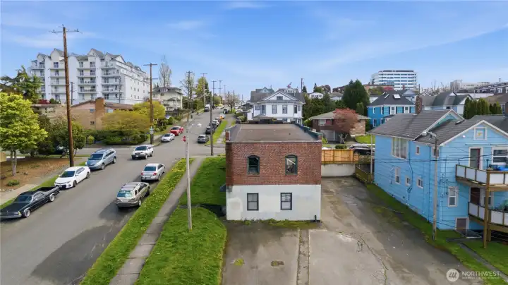 A rare opportunity on one of Everett's most storied streets. This 2,400 sq ft building, constructed in 1920, sits on a 6,098 sq ft street-to-alley lot in the heart of the Bayside neighborhood - a walkable, historically rich district along the bluffs overlooking the Sound. The building retains its original character: exposed brick, generous ceiling heights, and abundant natural light from large windows. Previously used as office space, the footprint is open and adaptable. Whether you're an investor, developer, or end-user with a vision, this property offers a blank canvas with serious bones. Zoned R5, which permits mid-rise residential development up to five stories, the street-to-alley parcel is well-positioned for a ground-up multifamily project. Combined with Everett's 2044 Comprehensive Plan - effective July 2025 and expanding density allowances across the downtown core - this is a site worth running numbers on. Buyers should confirm current development standards directly with the City of Everett Planning Department. Grand Avenue runs along the western bluff of Bayside, with views of Possession Sound, the Everett Marina, Naval Station Everett, and the Olympic Mountains on clear days. Grand Avenue Park is steps away. Downtown Everett - restaurants, the Historic Everett Theater, Angel of the Winds Arena, Carnegie Library - is all walkable. Providence Regional Medical Center, I-5, and Boeing / Paine Field are all within minutes. Sold as-is.