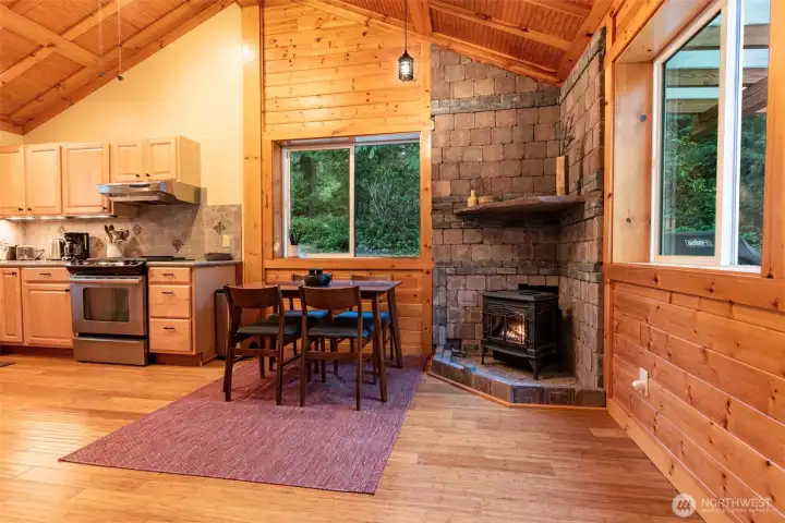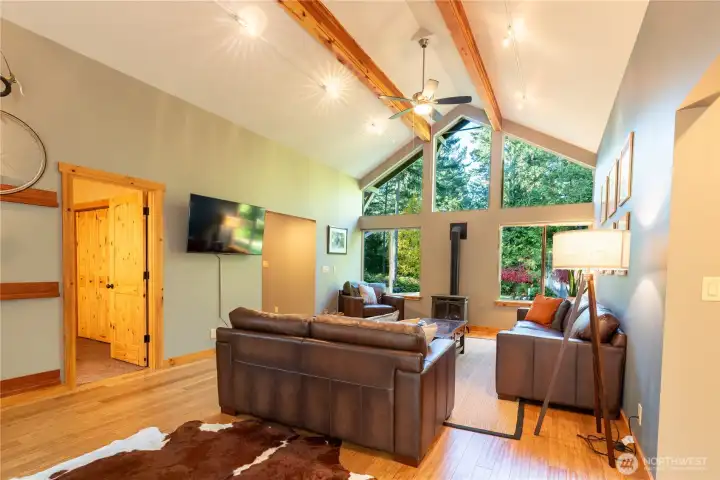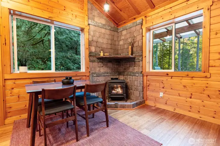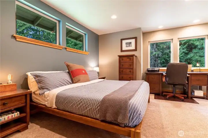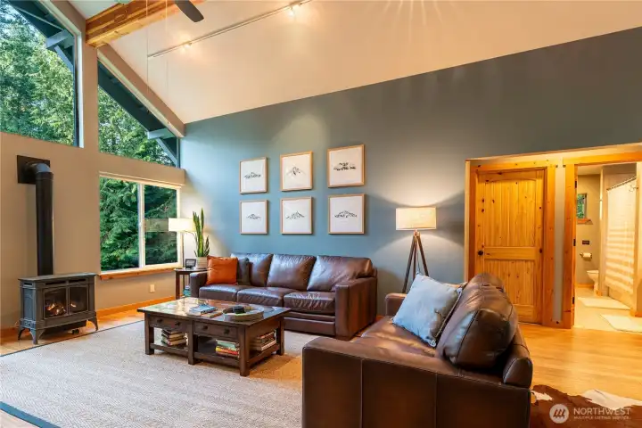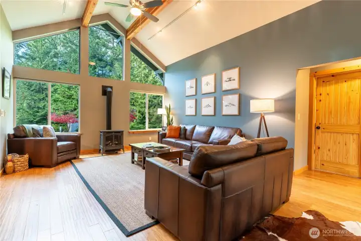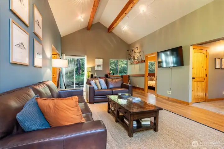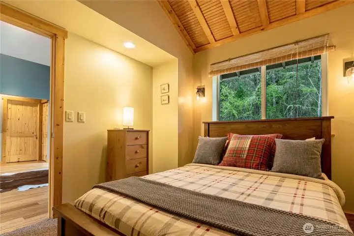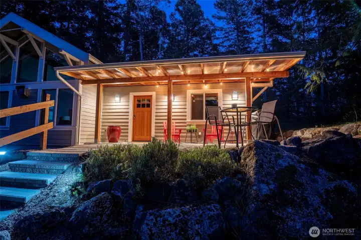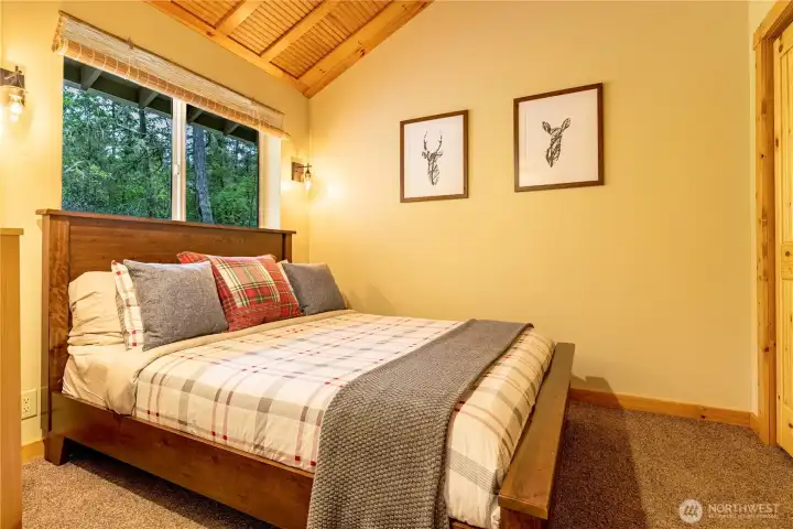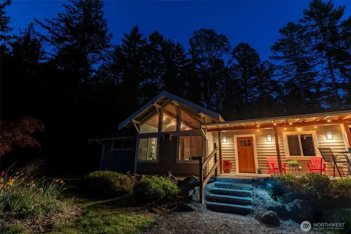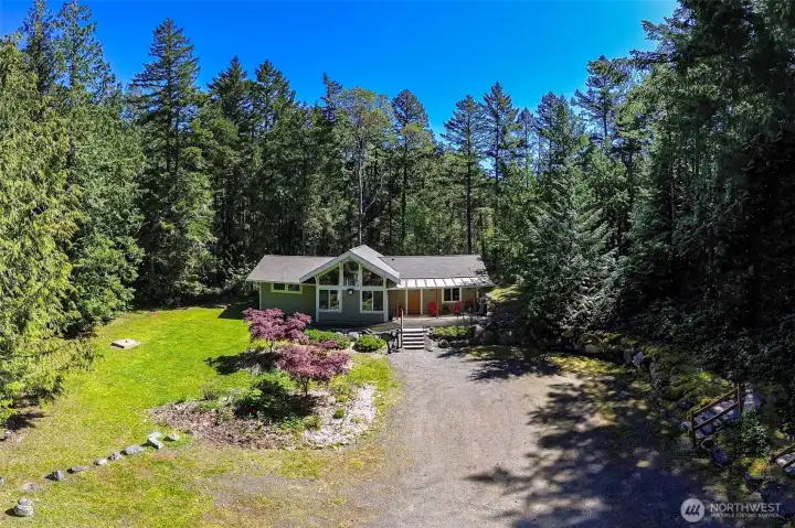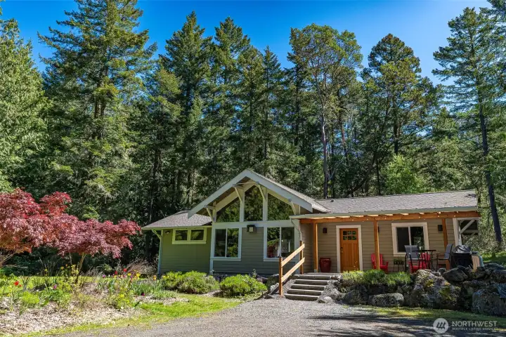 TURNKEY VACATION RENTAL OPPORTUNITY. Located near Roche Harbor on San Juan Island, this charming 2-bedroom, 1-bath modern cabin sits tucked among the trees on nearly 2 private acres, offering the seclusion and natural beauty that guests consistently love, reflected in its outstanding rental history and glowing reviews. Built in 2014, the 1,270 sq ft home features hardwood floors, soaring vaulted ceilings, a stunning wall of windows, and modern comfortable furnishings throughout, with two gas fireplaces adding warmth and ambiance. Sold completely turnkey with everything guests already love included, from bikes and board games to a turntable and vinyl collection, making this a seamless transition for a new owner to step right into an established, income-producing rental. A deeded neighborhood beach access on Davison Head is perfect for kayaking, and Roche Harbor Resort is just a short bike ride away, offering restaurants, shops, a marina, and more. The property also includes a covered patio, fire pit, horseshoe pits, and a gas grill. Infrastructure is solid: 3-bedroom septic recently inspected and pumped, Roche Harbor water system, Rock Island LTE internet, and a pre-listing inspection noting the home is exceptionally well-maintained. A rare, ready-to-go island retreat whether you're looking for a personal getaway, an investment property, or both.