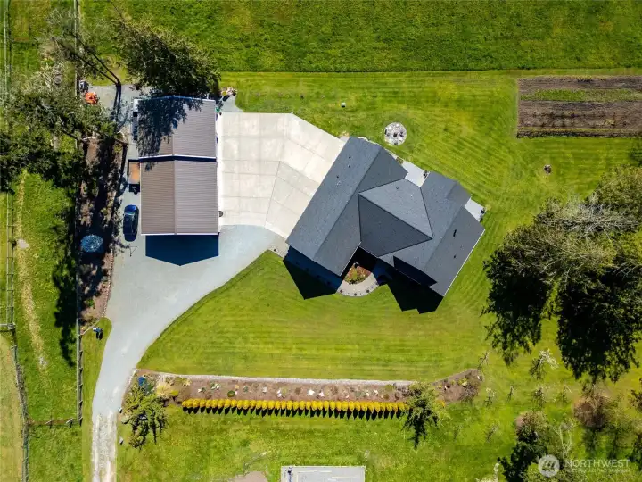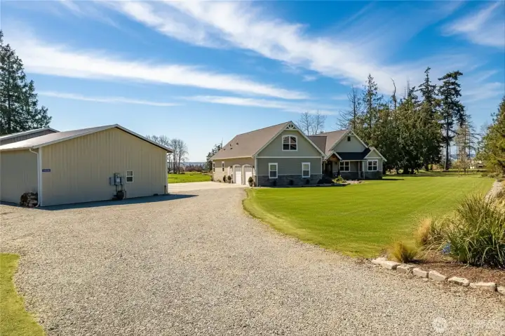 Set on 2.57 acres in a rural setting, this exceptional property blends refined living with everyday functionality. Thoughtfully designed with high-end finishes throughout, the home features an open-concept layout that seamlessly connects the kitchen, dining, and living areas—perfect for entertaining & comfortable daily living. Large windows invite in natural light & showcase the surrounding landscape, while premium materials & craftsmanship elevate every space. The well-appointed kitchen offers upscale appliances, quality cabinetry, and generous workspace for any culinary enthusiast. Main level primary suite includes soaking tub with bubbles, ADA walk in shower, double sink plus 2 walk in closets. 2 guest bedrooms plus full bath on opposite end of home for privacy. Office off front door with glass french doors & built in desk area. Upstairs two bonus rooms for storage, rec room etc. Outside, the property truly shines, enjoy wide-open space with room to roam, complemented by a substantial shop ideal for hobbies, storage, plumbed & area framed for bathroom if you wish to finish or add an ADU inside the shop. Dedicated RV parking provides convenience for travel enthusiasts along with onsite dump to septic The acreage offers endless possibilities for gardening, or simply enjoying the privacy and quiet of country living. This is a rare opportunity to own a home that combines luxury, versatility, and the freedom of rural life.