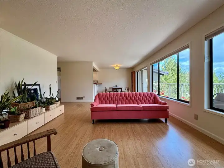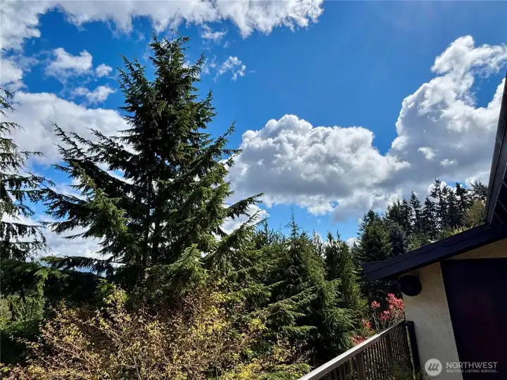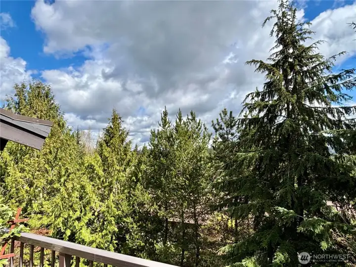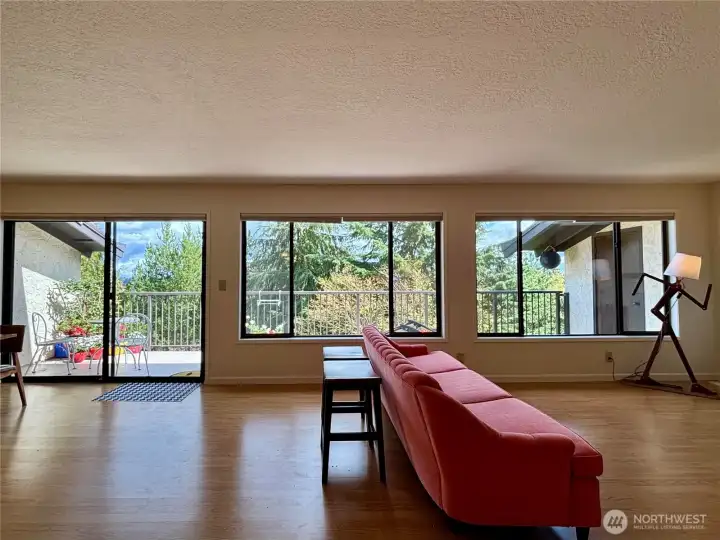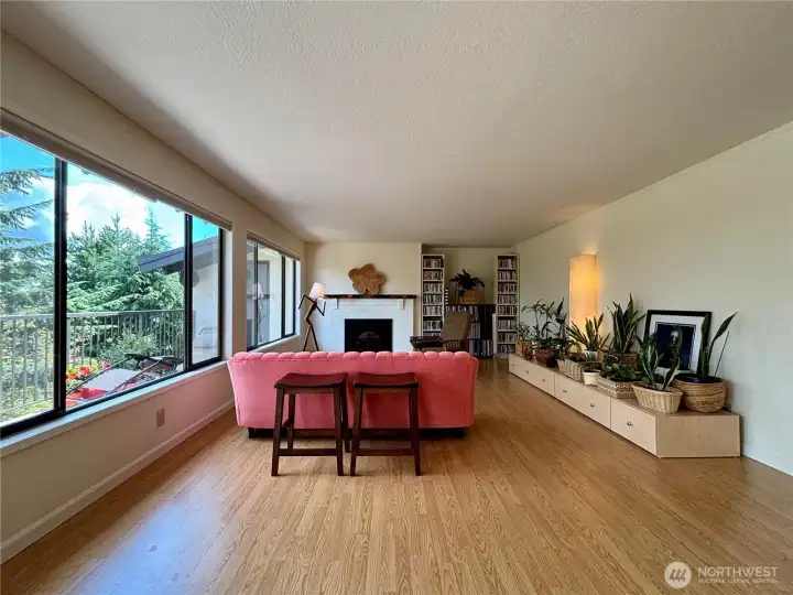 Unmatched views and tranquility await in this airy, expansive top floor 2 bedroom home. This is not your ordinary condo. This has breathing room, multiple entertaining spaces, and all the storage. Thoughtfully-designed, this functional layout includes an enormous living/dining room with a gorgeous fireplace and a wall of windows overlooking the huge balcony, draped in sunshine and views of forest and mountain caps. A generous kitchen with an additional live-edge bar top is chef-ready. Abundant natural light can also be found in the spacious bedrooms, each with its own bath and quick access to in-unit washer and dryer. The primary suite includes a large walk-in closet, an updated modern vanity and separate wet room. To top it all off, there is a covered parking spot just outside as well as a well-maintained community filled with amenities like a clubhouse, fitness room, pool, sport court, and even RV parking and a handyman space! HOA covers water, sewer, garbage, internet and cable. With plenty of guest parking and shopping, food, coffee and transit within walking distance, this home truly checks all your boxes!
