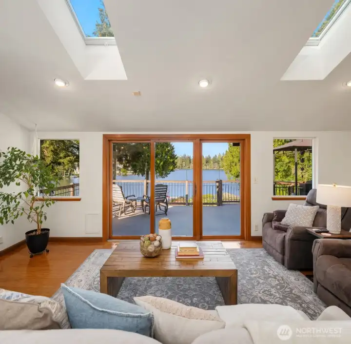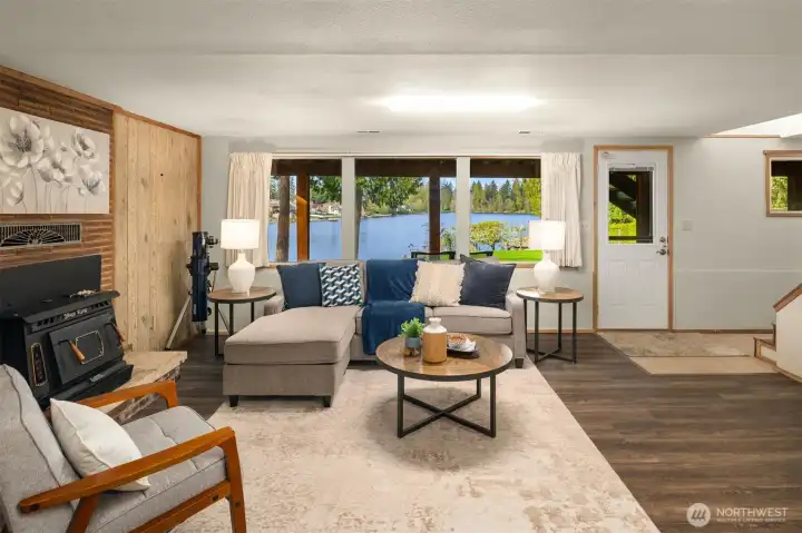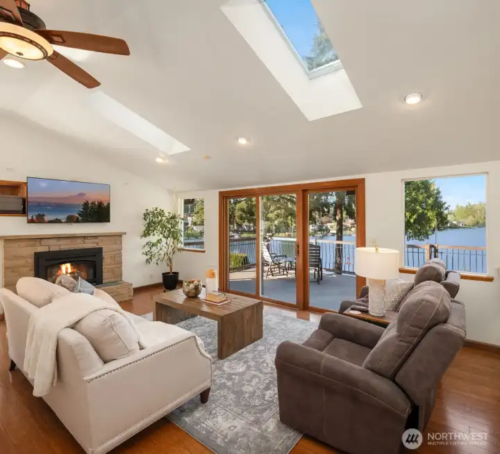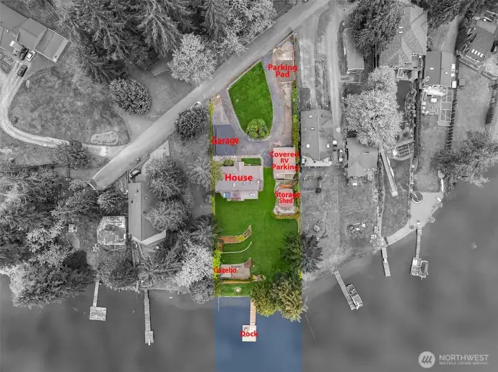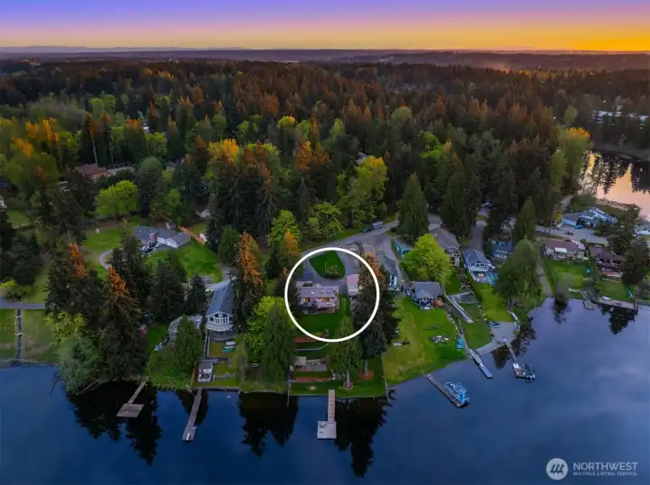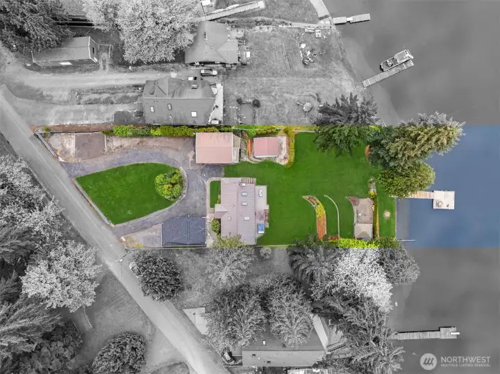 Rare opportunity to own one of Lake Geneva’s largest properties with 100' of no to low-bank waterfront on a gated 1.349-acre double lot. Held by the same family for approximately three generations and never before offered, this north-facing property delivers an exceptional blend of privacy, recreation, and future potential. Enjoy level beach access for easy swimming, a spring-fed lake known for clear water and electric-motor boating, a 16' x 20' concrete float with 36' catwalk, lakeside gazebo with storage, underground power and outdoor kitchen, patio and firepit, additional firepit, waterproof deck with hot tub and BBQ awning, detached garage, removable RV carport, multiple outbuildings, abundant parking, drive-through turnaround, and established landscaping with mature fruit trees and grapes. The flexible home features 3 bedrooms plus a downstairs den/potential 4th bedroom, basement plumbing for future bath expansion, remodeled upstairs, and built-in surround sound. Located next to Lake Killarney Park with nearby boat launch and public beach, this rare two-lake lifestyle offers peaceful waterfront living plus expanded recreation just steps away. Conveniently tucked on a dead-end street with minimal traffic, yet only about half a mile to I-5 and SR 167 and minutes to Auburn and Federal Way amenities. Two separate lots with sewer stubs on lots may offer future development, expansion, or multigenerational options; buyer to verify.