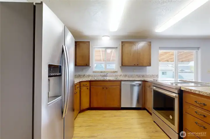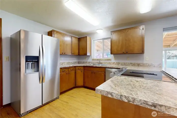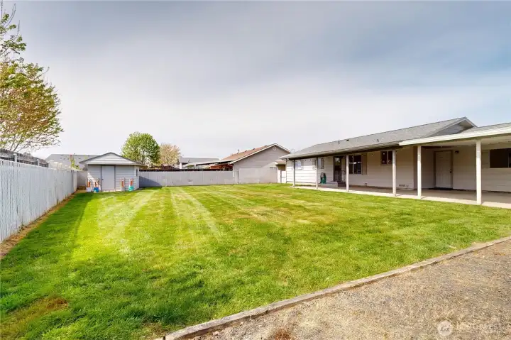 Welcome to this well-maintained 3-bedroom, 2-bath home offering comfort, functionality, and great outdoor space. The primary suite features an ensuite bathroom with walk in shower. The 2-car garage includes extra storage shelving, providing plenty of room for organization and hobbies. Step outside to a covered back patio—perfect for year-round entertaining or quiet evenings at home. The fully fenced yard offers privacy and space for pets, play, or gardening. Shed is a great place to store gardening supplies, lawn mower or bikes. Side RV parking.