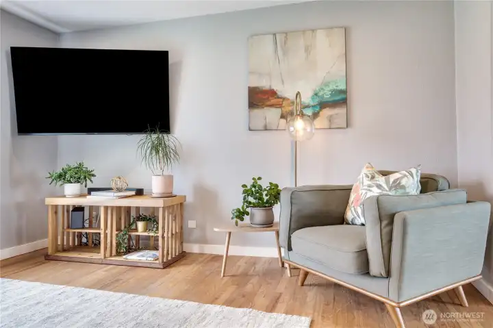 Step inside to rich hardwood floors that lead into a warm and inviting living room