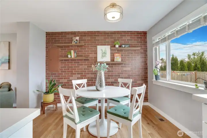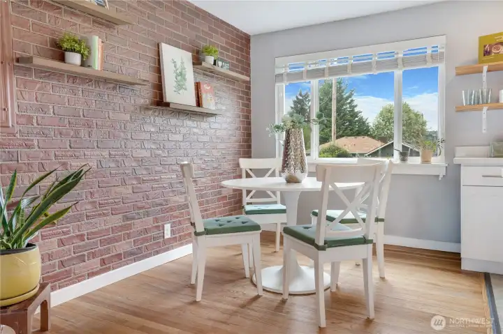 Enjoy a comfortable eating space just off the kitchen