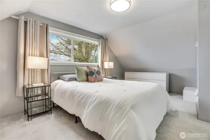 Second bedroom on the upper level adds to the home’s versatile floor plan