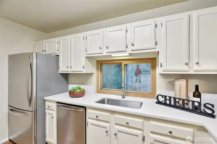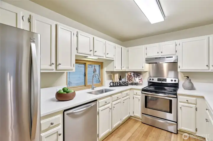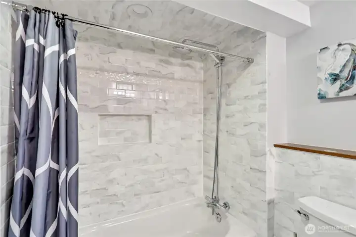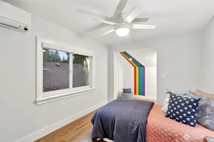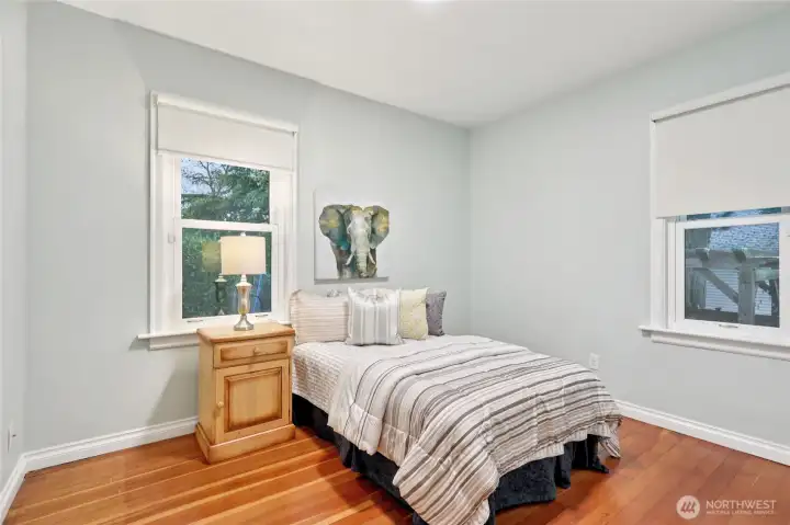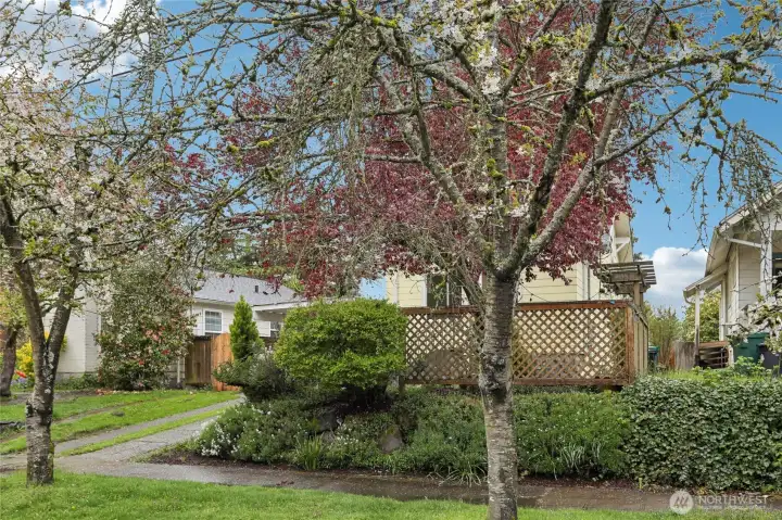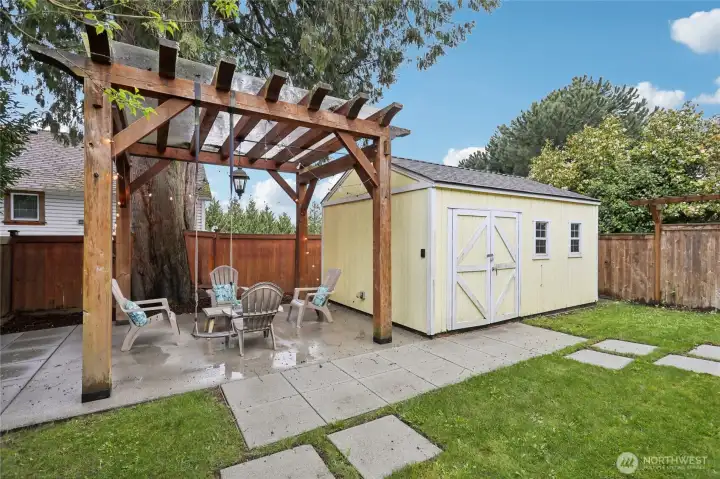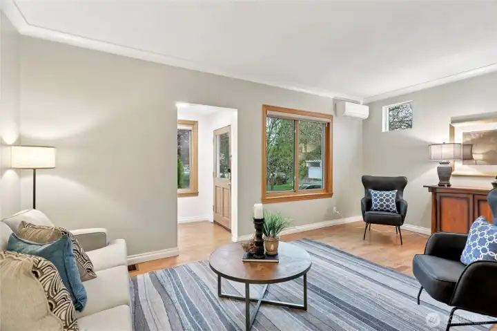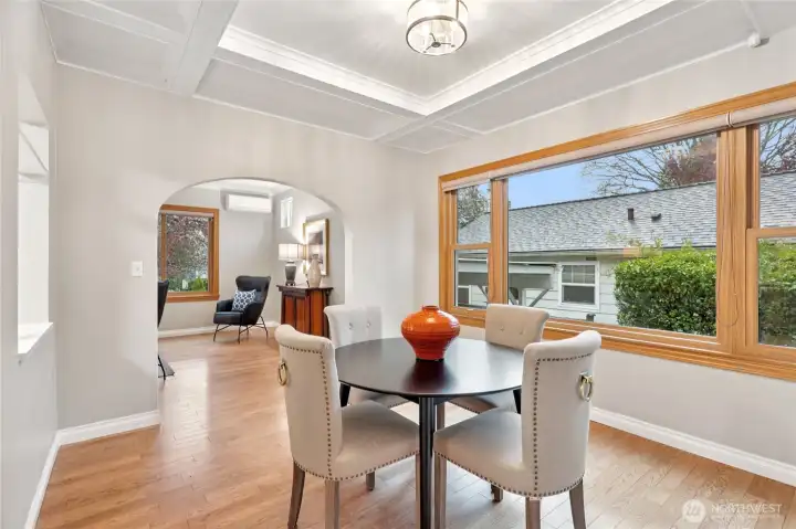 Welcome to this beautifully updated Green Lake Craftsman, where timeless architecture meets thoughtful modern upgrades. Bathed in natural light, this home showcases classic period details, including soaring 11-foot ceilings, elegant archways, rich hardwood floors, and stunning box beam ceilings that anchor the formal dining room with warmth and character. The main level offers a seamless blend of old and new, featuring an open, inviting kitchen with stainless steel appliances, updated countertops, and ample workspace—perfect for both everyday living and entertaining. Bathrooms have been tastefully renovated with quality finishes, while the remodeled lower level provides flexible living space ideal for a media room, home office, or guest accommodations. Major system updates include a new roof, energy-efficient triple-pane windows, and a new mini-split HVAC system for efficient year-round comfort. Enjoy peek-a-boo mountain views and step outside to a private backyard retreat featuring a charming arbor-covered patio—perfect for outdoor dining or relaxing evenings—plus a large detached shed offering abundant storage or workspace. Ideally located just moments from Green Lake Park, neighborhood shops, dining, and with easy access to I-5, this move-in-ready Craftsman offers the perfect blend of character, comfort, and convenience.