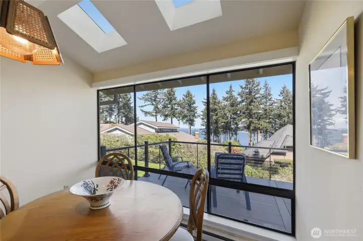 Dining room with a veiw and newly rebuilt