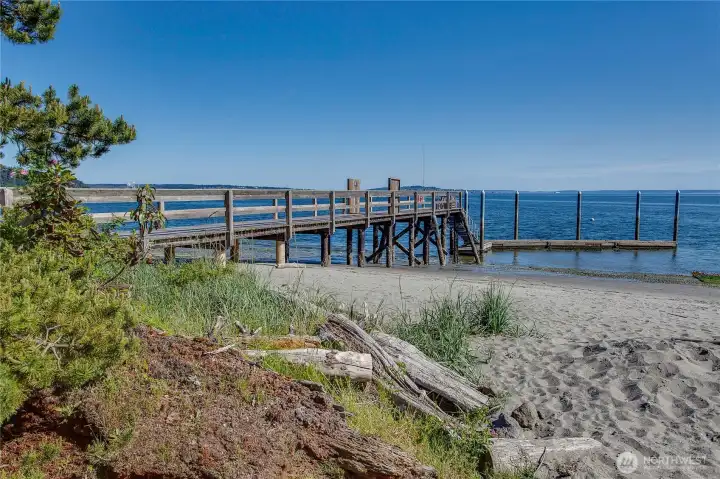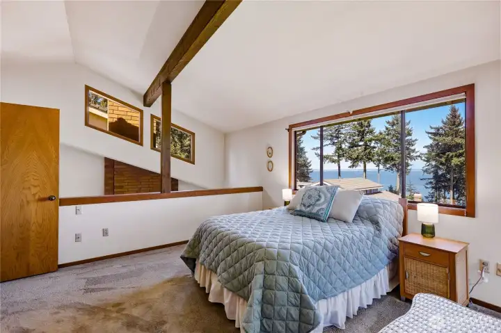 Perched in The Bluffs at Kala Point, this 2 bed, 2 bath condo captures sweeping views of Port Townsend Bay, Indian Island & the mountains beyond. The light-filled main level features soaring two-story vaulted ceilings, expansive windows & a recently rebuilt dining area and east-facing deck—perfect for morning coffee at sunrise. Upstairs, the primary suite offers a private retreat with vaulted ceilings, a separate sitting room with stunning views & a soaking tub thoughtfully positioned to take it all in. The entry level includes a guest bedroom & bath, foyer & garage with laundry. As an end unit, enjoy added privacy with a charming entry garden & mature flowering shrubs. Kala Point’s gated community amenities enhance the lifestyle with a clubhouse featuring a workout facility, indoor/outdoor pool, hot tub & sauna, along with a community beach, dock, tennis & pickleball courts, and miles of scenic wooded trails in the adjoining Fort Townsend. A rare opportunity to reimagine a view property in a sought-after setting—bring your vision & create something special.
