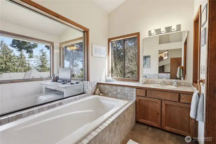 A soaking tub with a view
