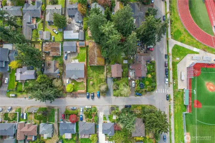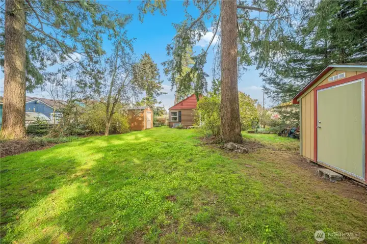 2-bedroom, 1-bath rambler The large lot of 8,100 sqft has development potential in NR2 Zoning for a new single-family home, DADU (for sure as driveway is alreadey there) or up to 4-5 Townhomes in the current city zoning. Across the street you will see a DADU conversion of the front home with larger home built in the back, buyer to verify with city. The expansive yard has two outbuildings and is ideal for entertaining, gardening, or creating your new landscaped vision. Prime location just about 1 mile to Shoreline South/148th Light Rail with direct access to Sea-Tac Airport, University of Washington, and downtown Seattle. Close to parks, shopping, dining, and quick access to Aurora Ave N and I-5. No HOA dues. Shoreline School District. Current taxes are under senior exemption so estimate new taxes to adjust to $5k-$6k.