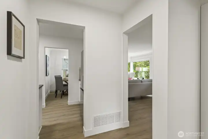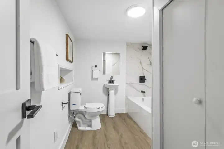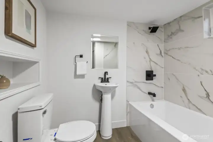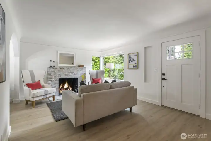 Discover timeless charm and modern comfort in this beautifully remodeled Wedgwood home. This 2-bedroom, 2-bath residence showcases classic details including coved ceilings, art rail, and an arched dining entry, creating warm and inviting living spaces.The main level features a cozy living room with fireplace, a fully remodeled kitchen, new appliances, two comfortable bedrooms, and a stylish full bath. Downstairs offers exceptional flexibility with a spacious rec room and second fireplace, an additional full bath, laundry area, and generous storage. Ideal for guests, work from home, or media space. Additional features include efficient forced-air heating, new windows, off-street parking, and an attached garage. The fully fenced yard offers privacy and versatility, creating an ideal setting for pets, play, or entertaining. Conveniently located near shopping, the University of Washington, and Seattle Children’s, this charming Wedgwood home blends comfort, character, and everyday convenience in one of Seattle’s most sought-after neighborhoods.