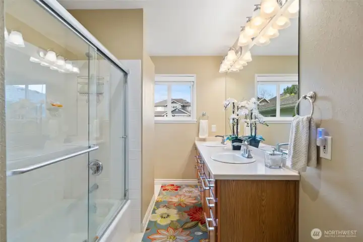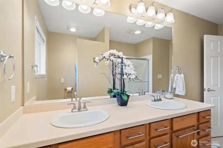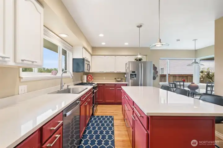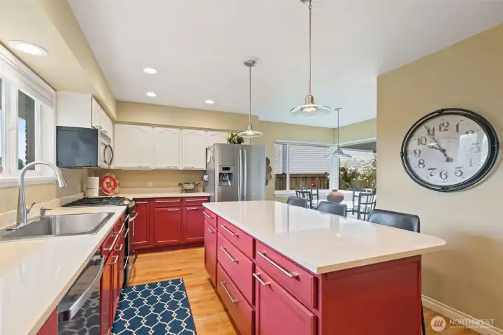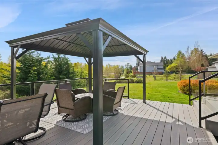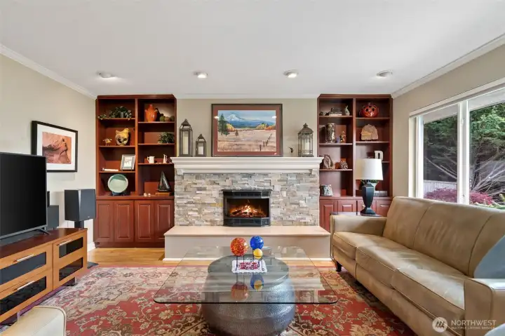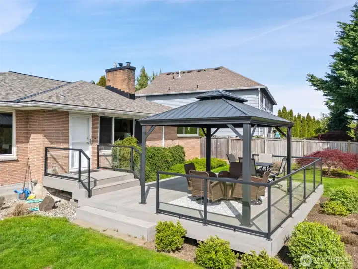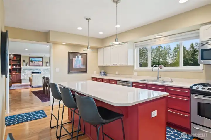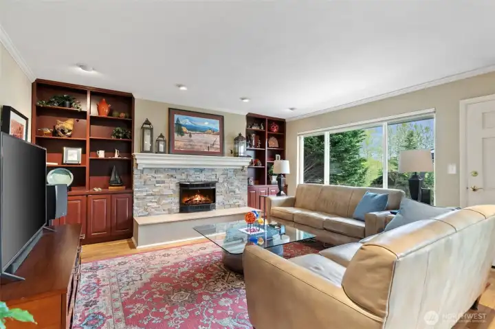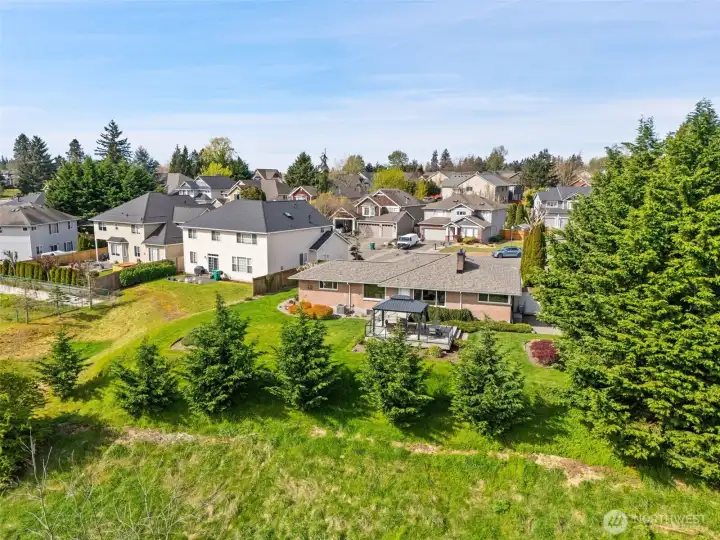 Welcome to this updated 4-bedroom Lea Hill home offering comfort & flexibility, on a rare 12,974 sf lot. Real hardwood floors and expansive windows fill the home with natural light. A beautifully appointed gas fireplace with a stacked stone surround, classic white mantel, and custom built-in shelving are the focal point in the living room that includes space for a dining table and is perfect for large gatherings. The remodeled kitchen is designed for both everyday living and entertaining, featuring quartz countertops, a spacious island, and a cozy breakfast nook overlooking the garden. Every bedroom is spacious, something that’s hard to find in homes of this era. Step outside to a massive Trex deck complete with a metal gazebo and clear views of Mount Rainier. With no rear neighbors and paved walking trails behind the home, you’ll enjoy a rare sense of privacy. The finished basement offers excellent versatility with a private entry, bedroom, bathroom, and additional living space, ideal for extended living, guests, or potential ADU use. Recently added finished storage space provides even more functionality. Major system updates include a new roof (2024) and furnace (January 2025), along with air conditioning for year-round comfort. Situated on an oversized 12,974 sq ft lot, this property also features a large 2-car garage and ample outdoor space. Located in a quiet cul-de-sac close to schools, highways, and shopping. Lea hill is a flourishing community, don't miss out!