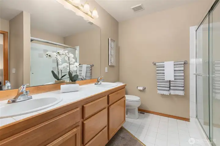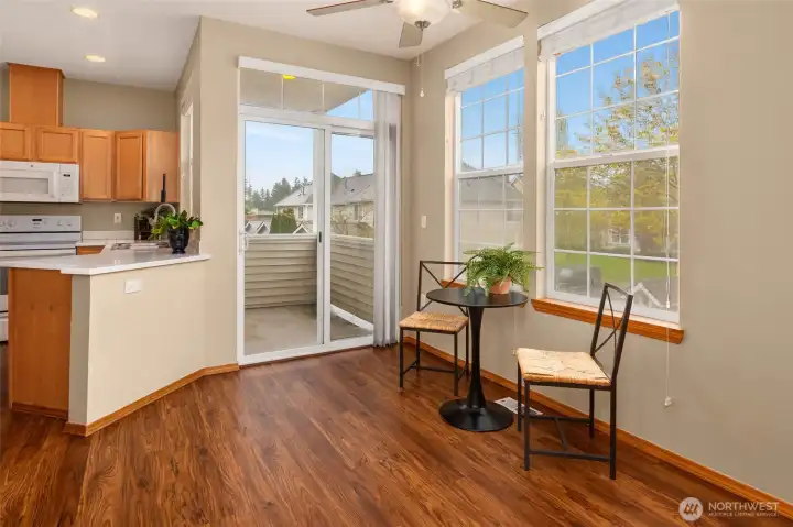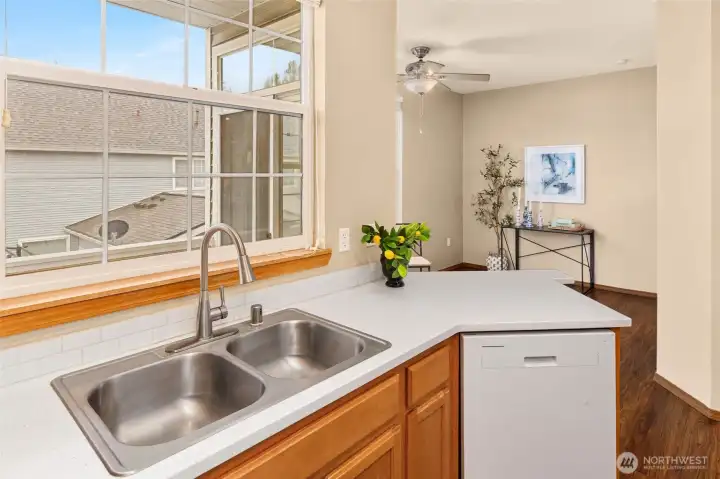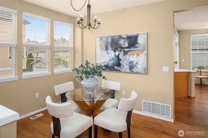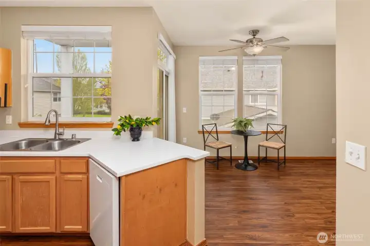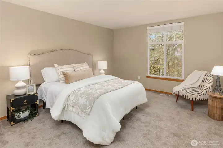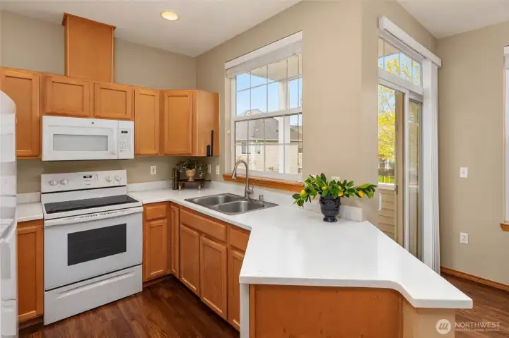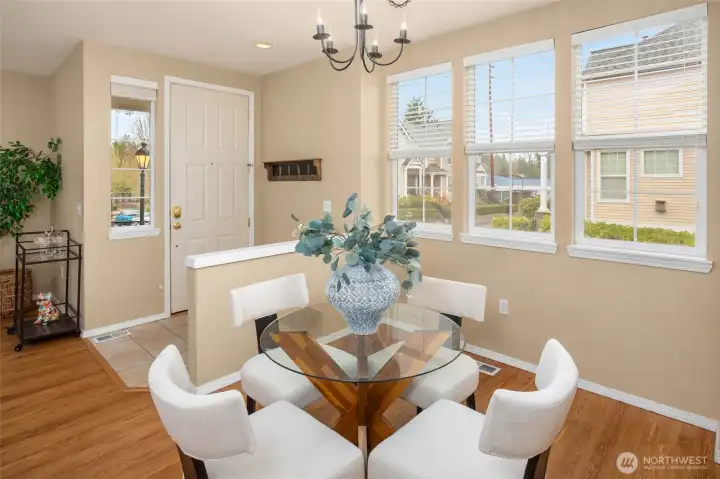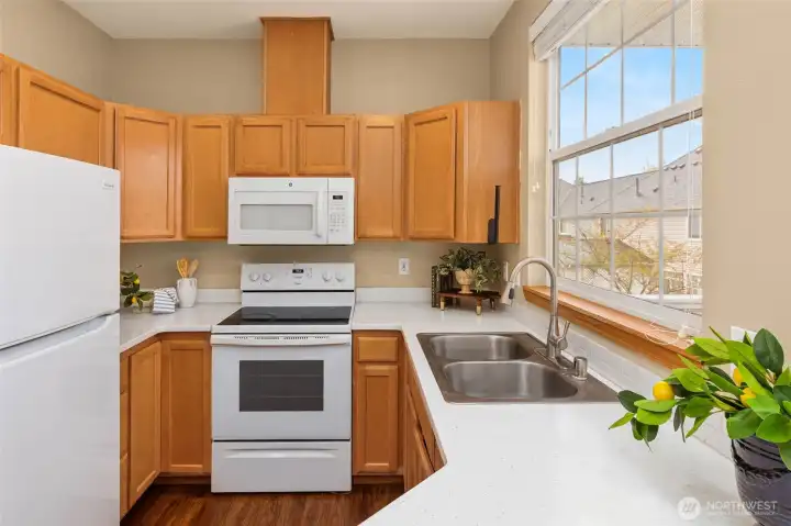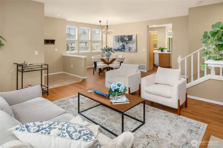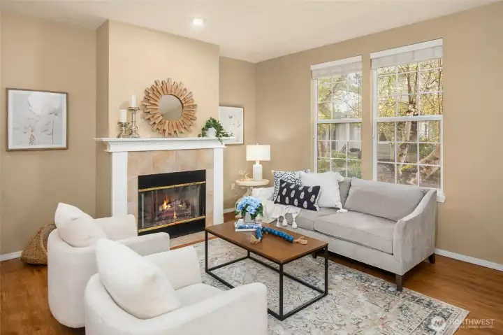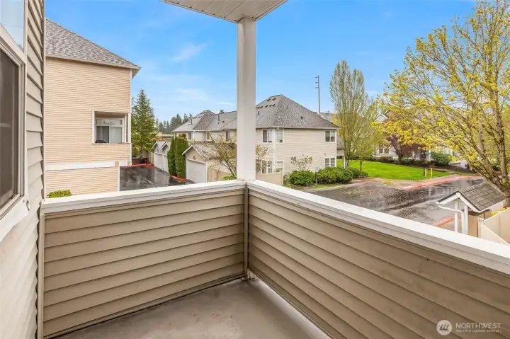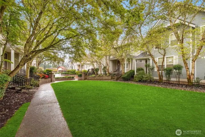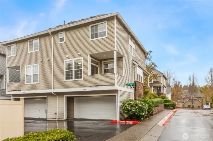 This stunning 2-level home in the highly desirable, Highland Parc community offers the space and feel of a single-family home with the ease of condo living. The lower level features an oversized 2-car attached garage with ample storage. The main level impresses with an open-concept layout showcasing a chef-inspired kitchen with quartz countertops, sun-filled dining area, cozy living room with gas fireplace, charming breakfast nook, convenient half bath, and a covered outdoor patio perfect for year-round entertaining. Upstairs, the private primary suite boasts an ensuite bath and generous walk-in closet. Two additional bedrooms share a full bath, and a dedicated laundry closet adds everyday convenience — all on the upper level. Minutes to top-rated Lake Washington School District schools, Microsoft, Amazon, and major Eastside employers. Easy access to I-90, SR-520, Redmond, Issaquah, and Bellevue. Steps from Trader Joe's, Starbucks, dining, and shopping. Community amenities include BBQ area, P-patch garden, and scenic trails. Rare opportunity — don't miss it!