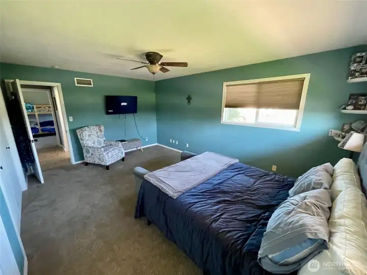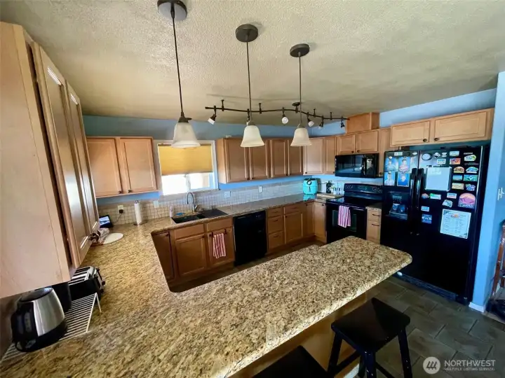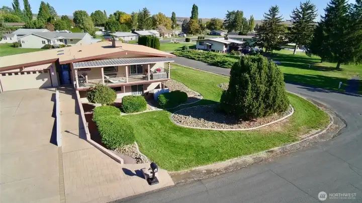 Experience elevated living in this beautifully updated 2,700 sq ft home perfectly positioned on an oversized, fully fenced corner lot with sweeping views of Hole 1 and Tee 2. This spacious 4-bedroom, 2-bath residence offers exceptional functionality and style. A stamped, oversized driveway provides ample parking, complemented by a 2-car attached garage featuring an electric vehicle charger and a versatile finished bonus room. Enter through a charming covered and gated courtyard into an impressive double-door entry. The heart of the home is a large kitchen with granite countertops, abundant cabinetry, and a generous dining area—perfect for entertaining. The open-concept living room flows seamlessly to an expansive deck, ideal for relaxing and enjoying the stunning golf course views. Both levels feature generously sized bedrooms, while the lower level includes a spacious family room with sliding door access to a private patio, a dedicated office, and abundant storage throughout. Cozy fireplaces on both levels enhance comfort and ambiance year-round. With its thoughtful layout, modern updates, and unbeatable views, this home offers a rare opportunity to enjoy space, privacy, and scenic surroundings all in one. Don’t miss your chance to make it yours.