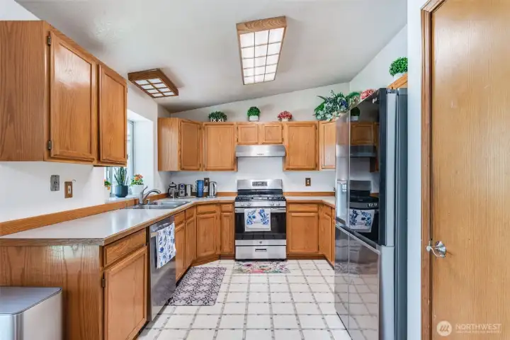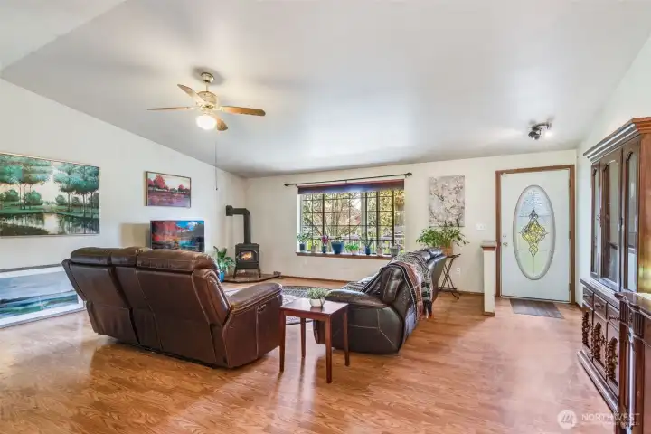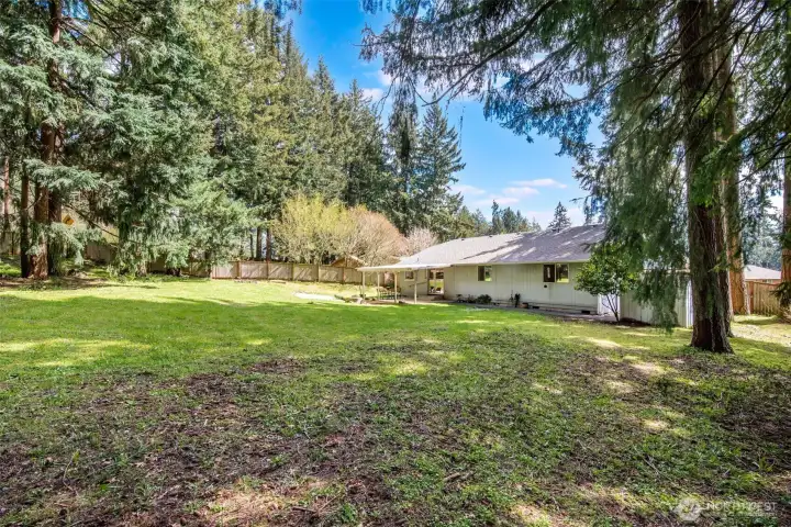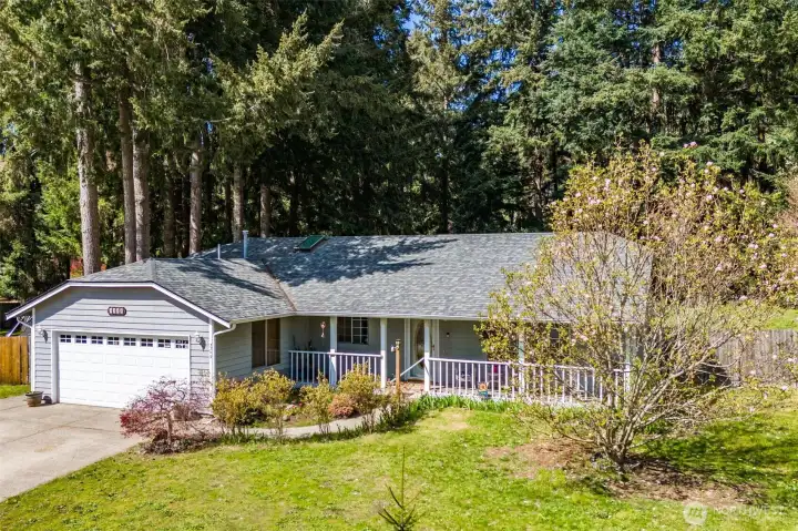 Welcome to your own slice of peaceful paradise in the highly desirable Lake Forest community—where charm, space, and lifestyle come together effortlessly. Set on a lush, park-like half-acre, this inviting rambler offers room to relax, play, and dream, with a convenient double gate providing ample space for your RV, boat, or trailer—perfect for those who love adventure as much as they love coming home. Discover a gardener’s delight, complete with a hugelkultur garden bed, blooming flowers, and established blueberry bushes ready for summer picking, along with a detached shed for storage and a newer roof (just four years old) for added peace of mind. Inside, natural light pours through beautiful bay windows, highlighting vaulted ceilings and creating a bright, airy living space, while a freestanding gas stove adds warmth and cozy ambiance, making it the perfect place to unwind; the dining area showcases elegant hardwood floors that elevate everyday living. The kitchen blends style and function with stainless steel appliances, including a newer refrigerator (2 years), dishwasher (4 years), and range (7 years), while all three bedrooms feature brand-new carpet. Enjoy exclusive gated access to Long Lake, where a private dock and boat launch invite you to fish, kayak, swim. As evening falls, settle onto your patio and take in the magic of golden hour, watching sunlight filter through the trees and feeling a deep sense of calm- this is more than a home, it's your everyday escape.