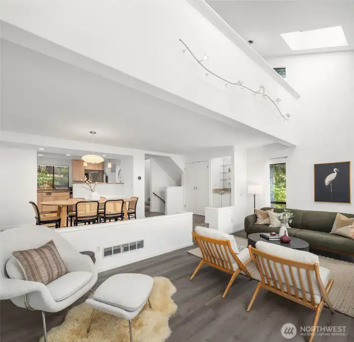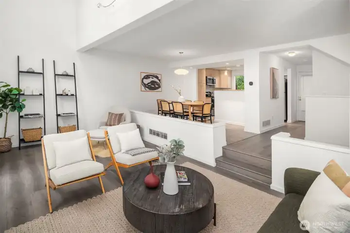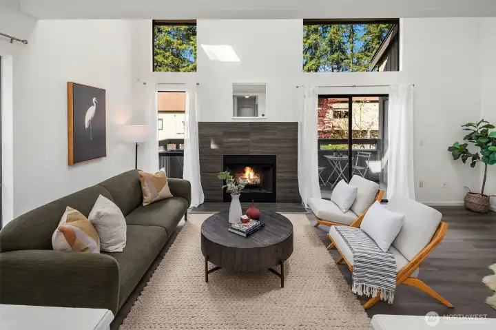 Welcome to this beautiful loft-style townhome, set in a prime Bellevue locale that blends serene, retreat-style living with effortless access to vibrant Eastside destinations — Bellevue, Kirkland, Redmond — and nearby Seattle. Step into bright and inviting spaces and an open-concept floor plan perfect for entertaining and easy everyday living. Cozy fireside living room with soaring ceiling and large windows providing abundant natural light. Chef’s kitchen with granite countertops, stainless steel appliances, and plentiful cabinetry and pantry storage. Two spacious bedrooms with en-suite bathrooms upstairs. Main-floor laundry and powder bath. Flexible office/den and mudroom/storage areas on lower level. Enjoy the outdoors from the private back deck or front balcony. Large 2-car attached garage providing convenience and security. Ample visitor parking for guests nearby. Recent upgrades include entry stairs, back deck and railing, chimney, fireplace, interior and exterior paint, and more. Serene wooded setting in desirable Yarrowood community, featuring an outdoor pool, tennis court, and clubhouse/cabana with large fireside entertaining spaces, game room, and deck overlooking the pool – a well-stewarded property with an active HOA board, no rental cap, and no special assessments. Fabulous location – minutes to premier shopping and dining, beaches, parks, and transit – steps to Cross Kirkland Corridor Trail and South Kirkland Park & Ride. Don’t miss this special home!