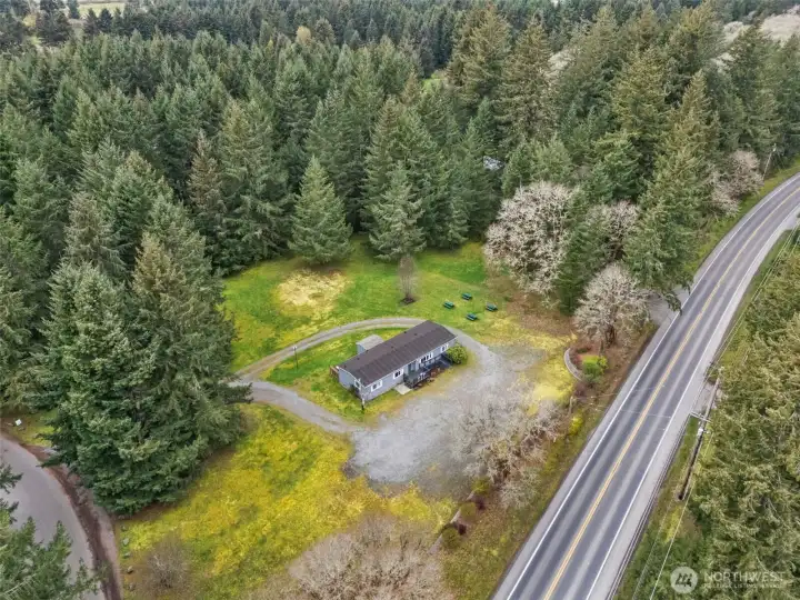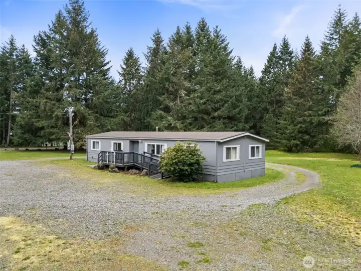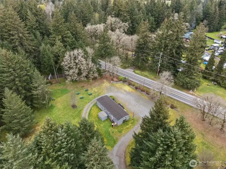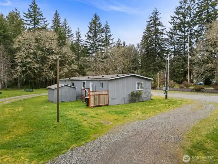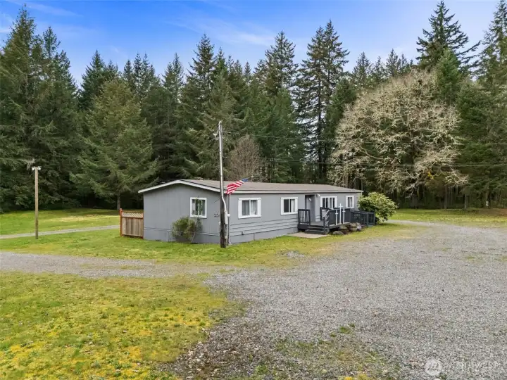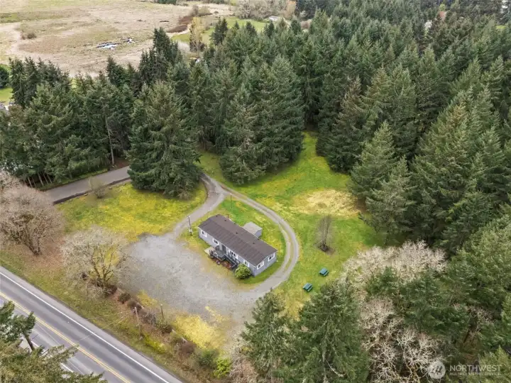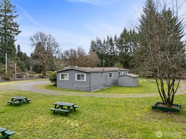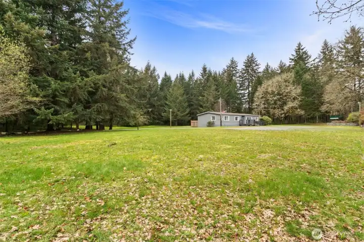 Discover a rare opportunity on 4.7 beautifully maintained acres at 3046 Angus Rd SE in Tenino. Surrounded by towering evergreens and natural privacy, this property offers a peaceful, park-like setting with expansive meadow spaces and open grounds, creating a serene and inviting environment. A circular gravel driveway provides easy access throughout the property, while mature landscaping, large established trees, and a thoughtfully constructed retention wall enhance both beauty and functionality. For many decades, this special property has been utilized as a church where the faithful gathered, creating a place rich with history and purpose. The existing manufactured home has been well maintained and carefully cared for over the years, offering flexibility for a variety of future uses. The grounds truly shine, featuring open grassy areas, scattered picnic spaces, and a blend of cleared land and wooded surroundings that provide both usability and privacy. With water, power, and septic already in place, the property is well-equipped for continued use or future possibilities. Conveniently located near Tenino’s charming downtown, local schools, and parks with easy access to Olympia and I-5. This property offers the perfect balance of rural tranquility and accessibility. Whether you envision a gathering space, private retreat, or investment in land, this is a truly unique opportunity in Thurston County.