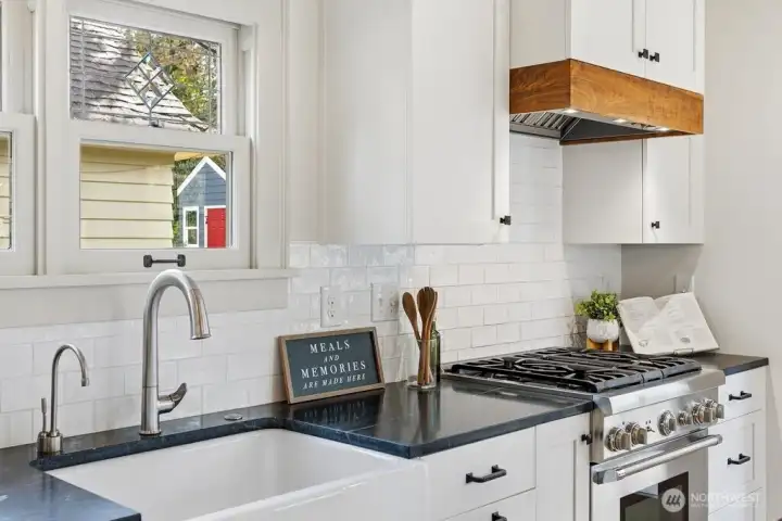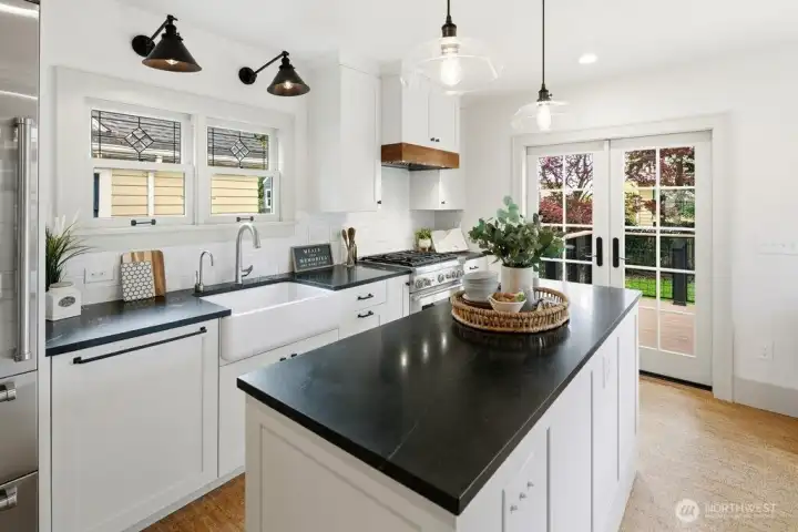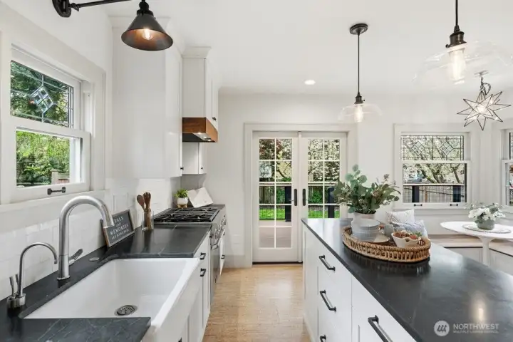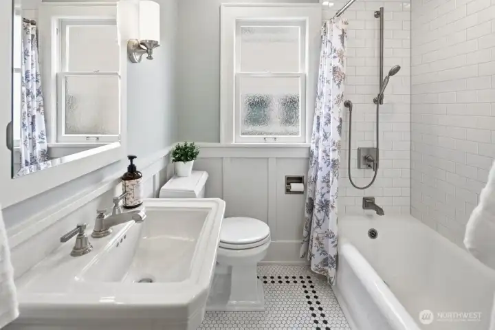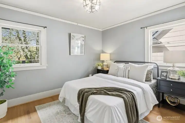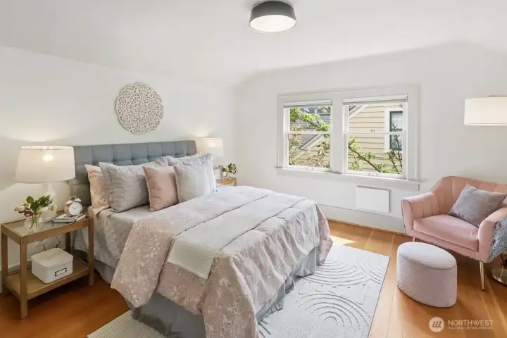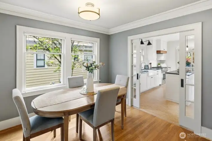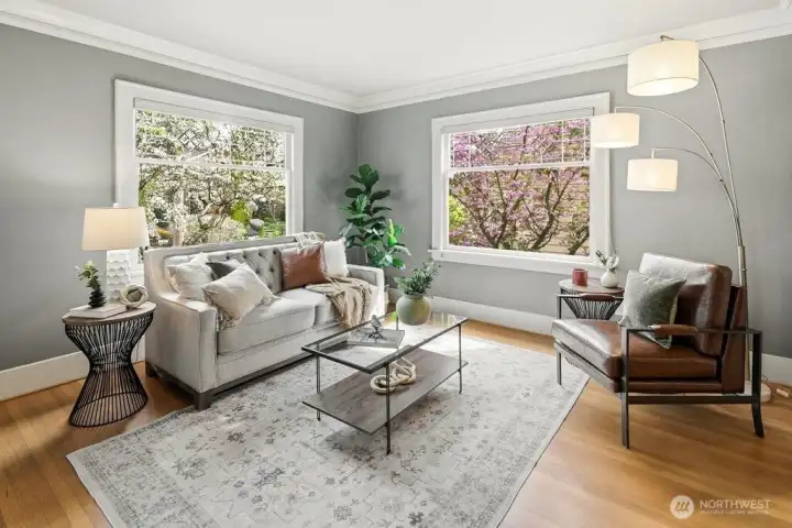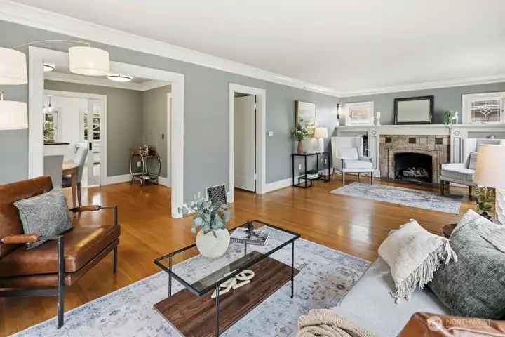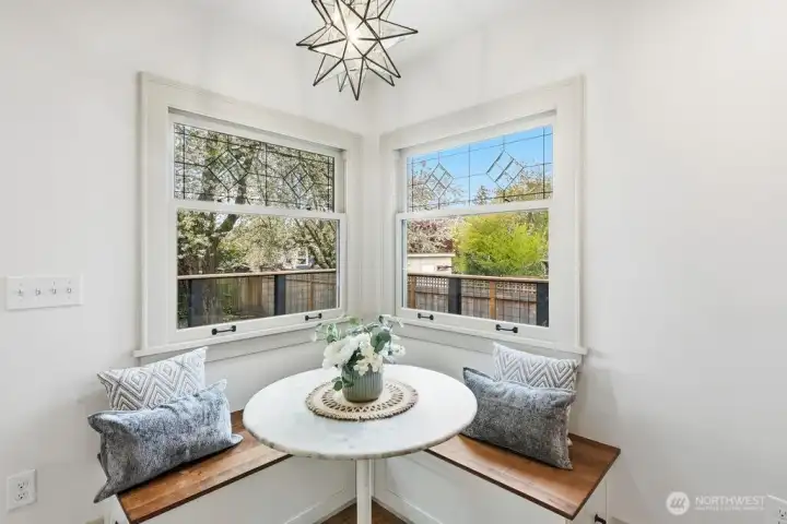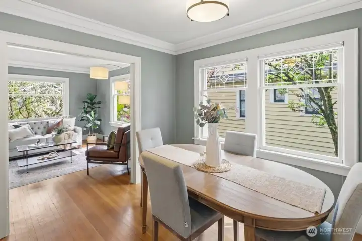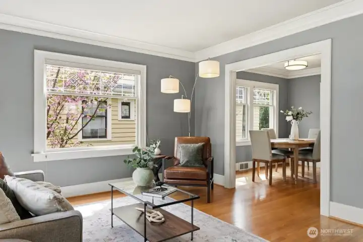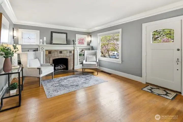 Light-filled, gorgeous, and timeless, this 1925 Craftsman in the sought-after Ravenna neighborhood blends classic charm with everyday comfort. Leaded-glass windows, gleaming hardwood floors, and original built-ins create a warm, inviting atmosphere, while the handsome Batchelder tiled gas fireplace anchors the main living space. A formal dining room easily accommodates 8 guests with room for a hutch and buffet, making it ideal for gatherings both large and small. A spacious kitchen offers abundant cabinetry, an appliance garage, top-end appliances, generous counter space, and a cozy breakfast nook perfect for morning coffee or casual meals. Thoughtful updates, including air conditioning, heated bathroom floors, and an entertainer's deck provide year-round comfort while preserving the home's distinctive character. Period details are showcased throughout, adding depth and timeless appeal. The full basement offers excellent flexibility for storage, hobbies, or future potential uses, and an attached garage adds everyday convenience and a level entry into the house. Outside, the fully fenced backyard creates a private retreat with space to relax, garden, or entertain. Walk to the nearby farmer's market, parks, grocery stores, shops, excellent schools, U district, and plentiful dining with easy access to bike paths, light rail, and I-5. This home offers a rare combination of historic charm, functional living, a friendly multi-generational neighborhood, and a prime in-city location.