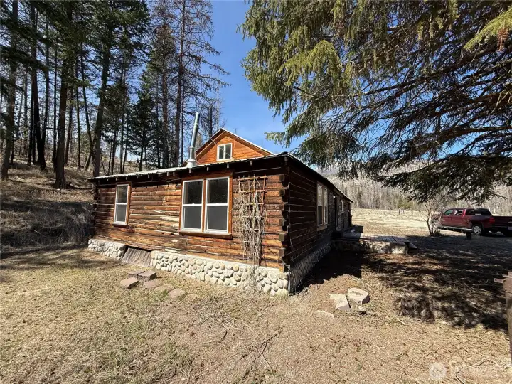 Excellent opportunity with this one level log home on acreage. Very private setting yet easy year round access off of a paved county road. Home needs some TLC but is solid with lots of potential. Wood stove for heat, a drilled well, power & septic. Beautiful views of the Bonaparte Lake Valley. Close to excellent fishing in Bonaparte Lake & miles & miles of public land recreation.