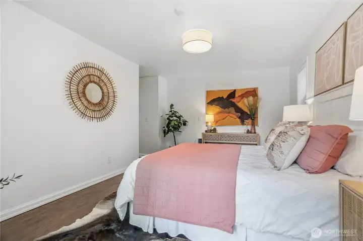 Rare ground-floor 3-bedroom, 1.75 bath end-unit with two private patios and a peaceful greenbelt backdrop—this one just lives differently. Fully refreshed and ready to enjoy, it’s the kind of space that feels easy the moment you step inside. Fresh paint, updated lighting, and rich laminate hardwoods bring warmth and a bright, modern vibe throughout. The remodeled kitchen shines with quartz counters, stainless appliances, a brand-new fridge, tiled backsplash, and sleek range hood—perfect for everything from quick mornings to relaxed nights in. Both bathrooms are completely reimagined with new vanities, designer lighting, and tiled showers in both for a clean, spa-like feel. Cozy wood-burning fireplace, in-unit laundry, and great natural light round it out. Step outside to two private patios backing to a serene greenbelt—ideal for morning coffee, evenings with friends or just a little extra breathing room. Perfectly positioned just moments from The Village at Totem Lake, Evergreen Hospital, and I-405, this home offers effortless access to shopping, dining, and commuting. Enjoy a quiet, well-maintained community with a pool, hot tub, strong HOA, designated covered parking, and ample guest parking — all within the highly regarded Lake Washington School District. Turnkey. An amazing opportunity in one of Kirkland’s most convenient locations.