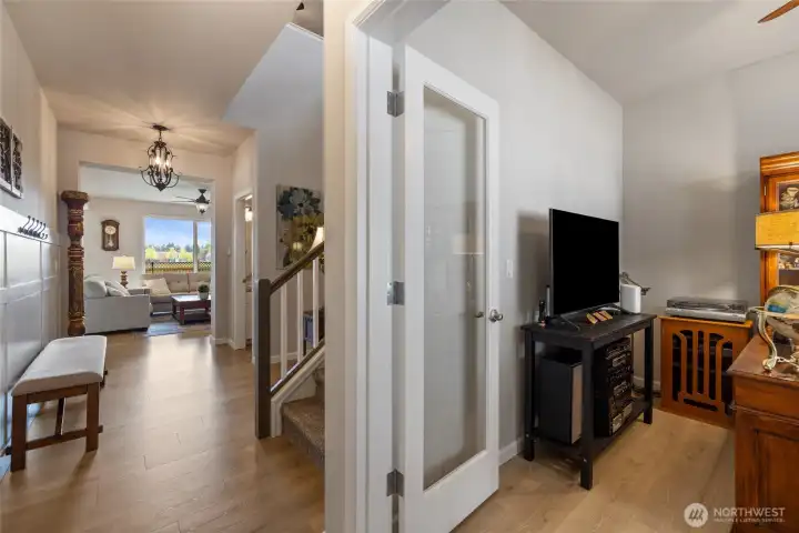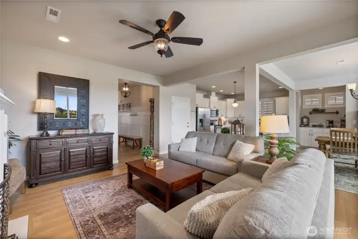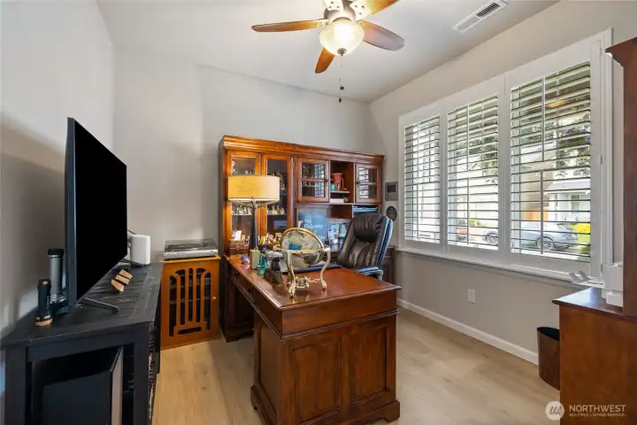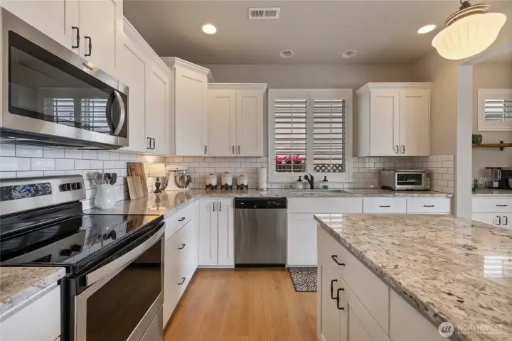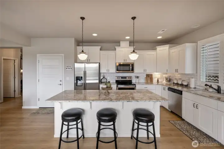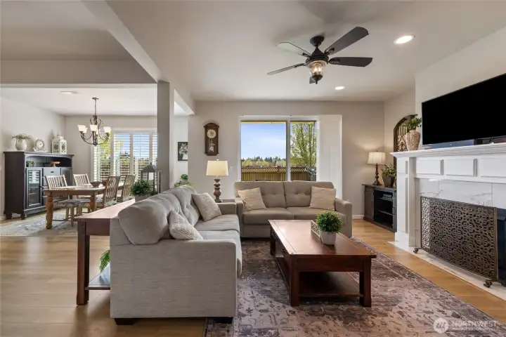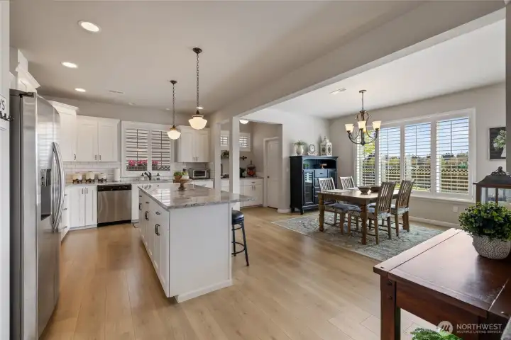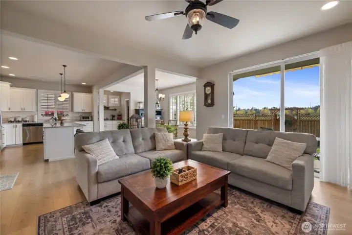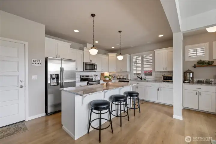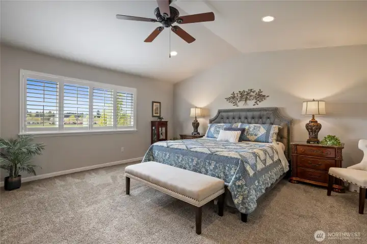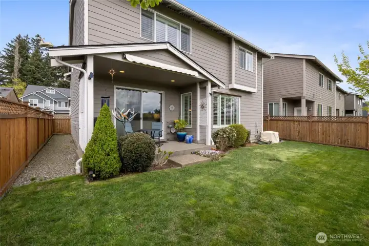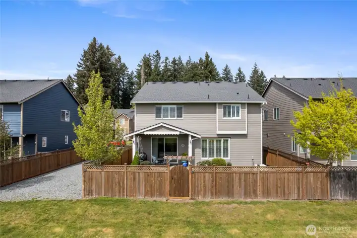Welcome home to this exquisitely maintained residence in Horizon Pointe, offering space, functionality, and privacy, with beautiful plantation shutters throughout. This property features laminate hardwood throughout the main level, a dedicated downstairs office with French doors, and a well-appointed kitchen with granite countertops, staggered cabinetry, and a walk-in pantry for added storage.Upstairs, all bedrooms include walk-in closets, while the expansive primary suite showcases vaulted ceilings, an oversized walk-in closet, and a 5-piece bath with separated dual sinks and a tiled shower.Step outside to a truly private backyard with no neighbors beyond the rear fence, plus an expandable awning over the patio—perfect for relaxing or entertaining year-round. Just steps from Horizon Pointe Park, enjoy easy access to open space and recreation. Conveniently located near JBLM and shopping, this property offers privacy where it matters and access to everything else. NO HOA DUES! Pre-inspection available for your piece of mind.