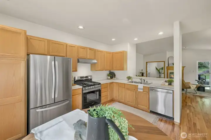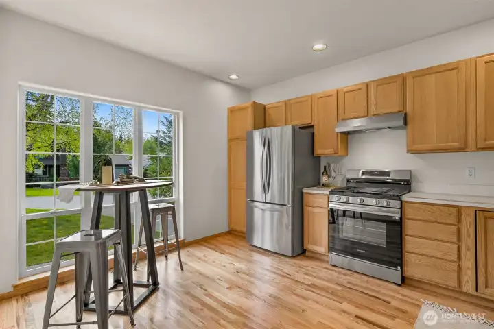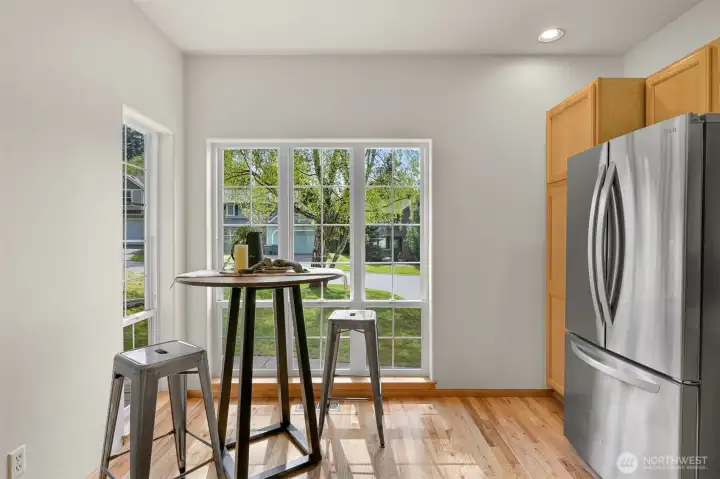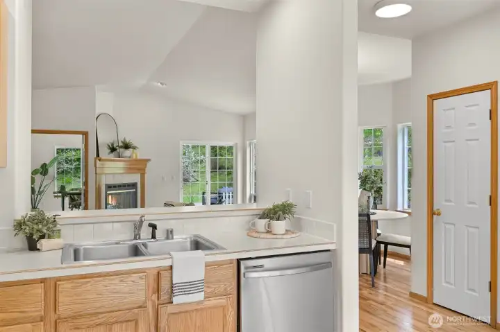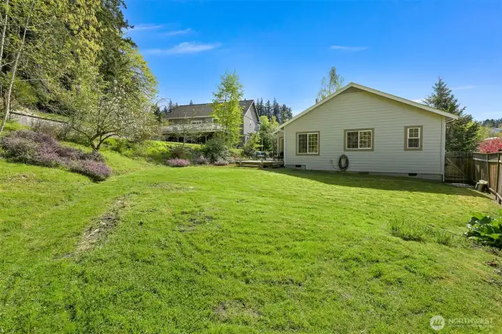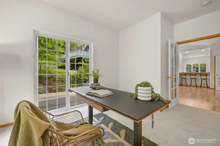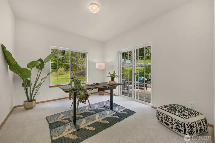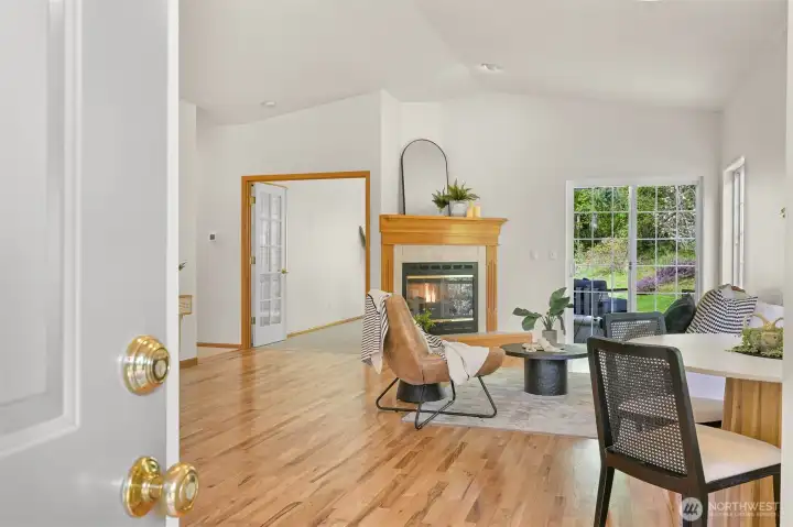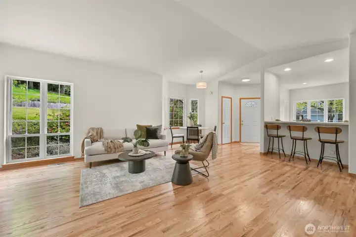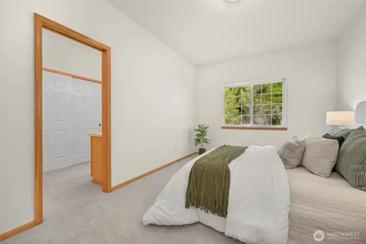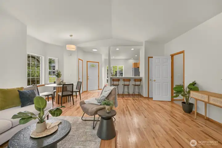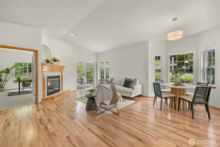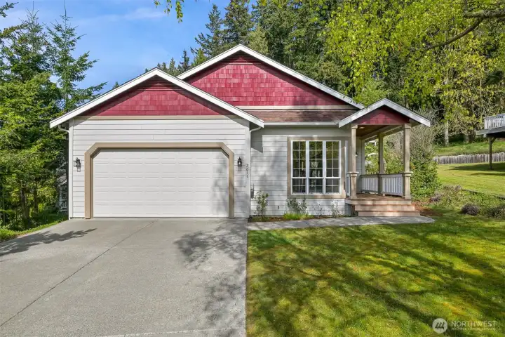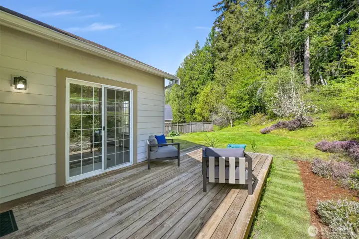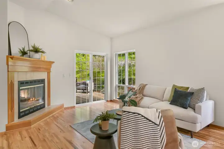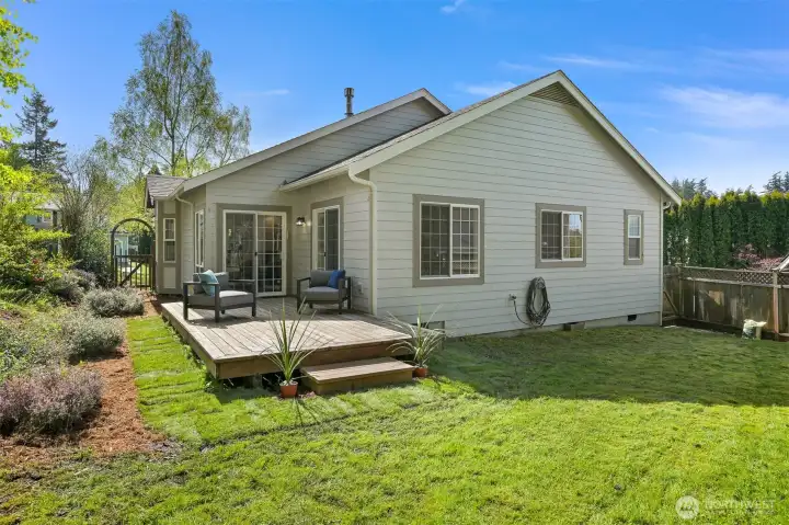 Single-level home in the Fairhaven neighborhood with a 2-car garage - an absolute gem! This home has site-finished oak hardwood floors, walls of windows that flood the space with natural light, and soaring vaulted and 9-foot ceilings. Inside you'll find a living room with a gas fireplace with a mantel and hearth, a kitchen designed for both functionality and charm with an eating nook and breakfast bar, and a convenient laundry room. The spacious primary suite features a walk-in closet, a water closet and a full bath. A second full bath serves guests with ease. French doors open to a versatile room that can serve as an office or a bedroom, while a sliding glass door leads to a lovely deck, perfect for enjoying the serene surroundings. Backing onto the stunning 100-Acre Wood this home offers direct access to gorgeous trails, Fairhaven Park, and the Interurban Trail system providing miles of scenic adventures. Plus, you're just a short stroll to historic Fairhaven, where charming shops, cozy cafes, and delightful restaurants await. Nearby waterfront parks, the Community Boating Center, and the Bellingham Cruise Terminal add to the lifestyle perks. From here you can hop on the Amtrak to Portland, Seattle, or Vancouver, catch a boat charter for whale watching, sale on the Schooner Zodiac or Ferry to Alaska. This location is truly one of a kind, offering an irreplaceable combination of nature, convenience, and lifestyle flexibility. Homes like this are rare—don’t let it slip away!