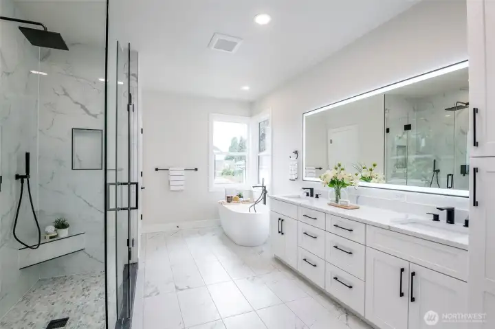 Meraki Homes presents this exceptional new construction residence in the heart of Rose Hill, offering 4,326 sq ft, 5 bedrooms, and 4 baths. A sophisticated blend of clean-lined architecture and curated finishes, the home is defined by 10-ft ceilings, wide-plank hardwoods, and elevated millwork throughout. Designed for modern living, the main level features a private office suite, guest en-suite, and a fully built-out mudroom. The great room anchors the home with abundant natural light and seamless indoor-outdoor connection, flowing into a chef’s kitchen appointed with premium appliances, custom cabinetry, statement island, and walk-in pantry. Upstairs, the primary suite delivers a true retreat with lounge space and fireplace, complemented by a spa-caliber bath featuring heated floors, soaking tub, dual vanities, and a generous walk-in closet. Secondary bedrooms are well-proportioned with thoughtful separation and functionality. Covered outdoor living, mature landscaping, and a private setting create a true Northwest backdrop. Positioned in one of Kirkland’s most desirable neighborhoods, this offering delivers a rare combination of design, scale, and livability. Add in the DADU for a complete package.