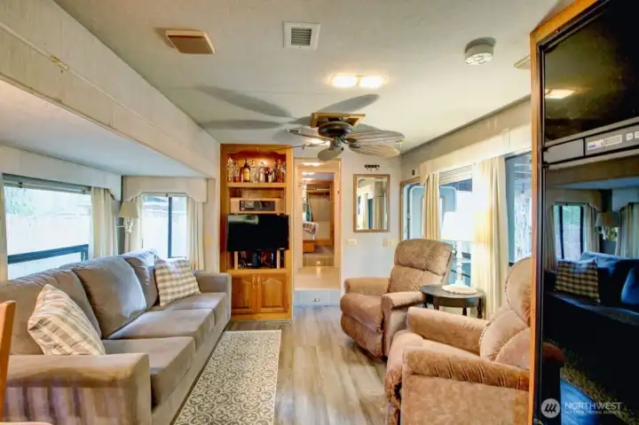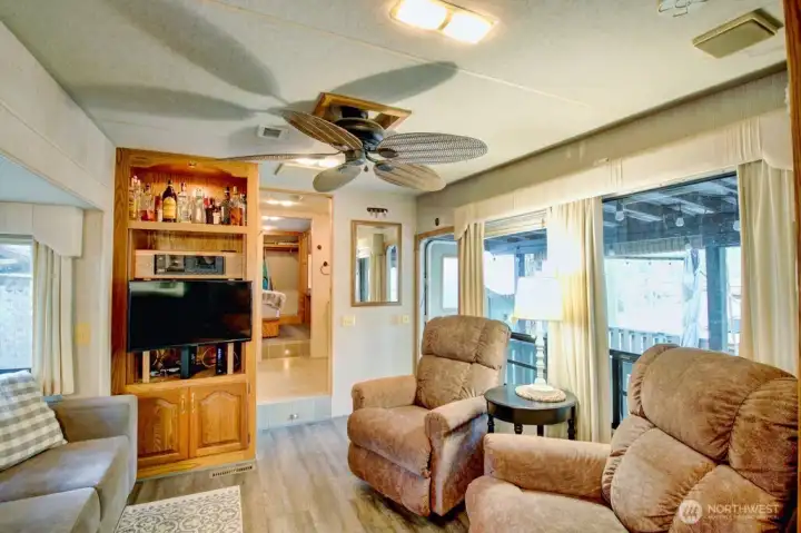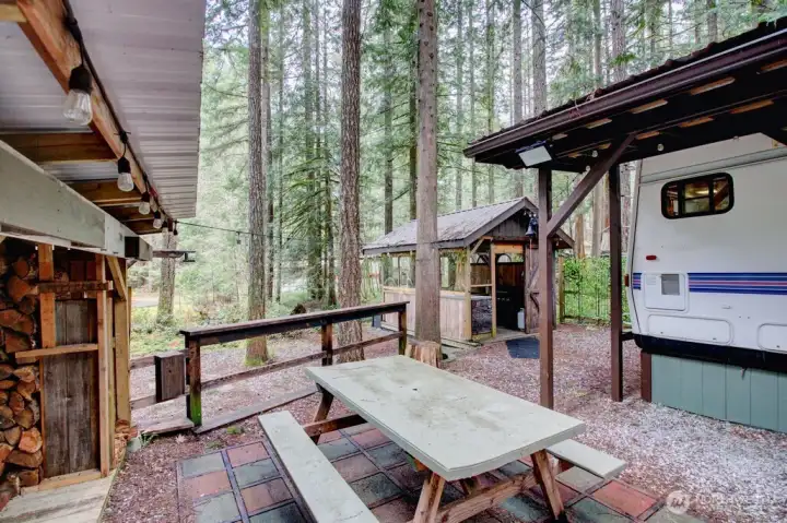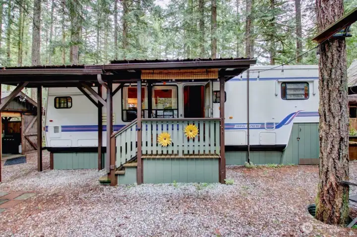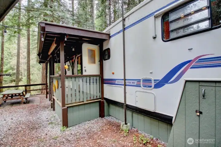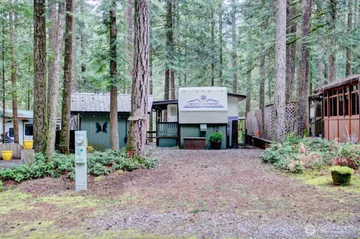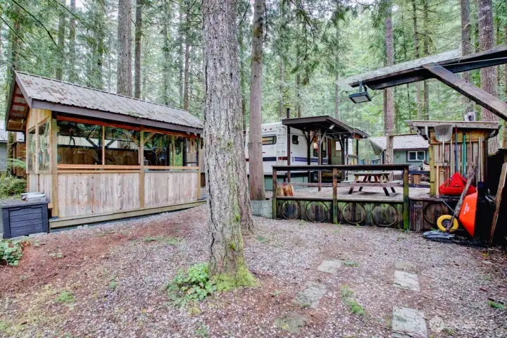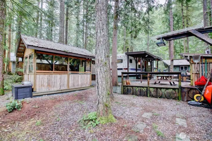 Super cool Fifth Wheel with thoughtful updates on a partially fenced multilevel lot adjacent to the division three playground and trail to the might Nooksack River. Insulated shed is an amazing flex space and/or heated storage area. Gazebo is an outdoor cooking space that overlooks both levels of the lot and firepit area. Extra secure storage under the fifth wheel hookup. The Glen is zoned recreational for 120 days of use out of the year and has all the amenities you could want, including 2 pools, hot tub, pickleball court, wooded disc golf course near the Nooksack River, library, laundry mat, 2 clubhouse, teen gaming center, 24 hr security, gated entry, & play areas.