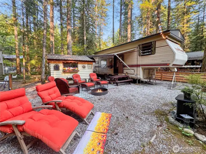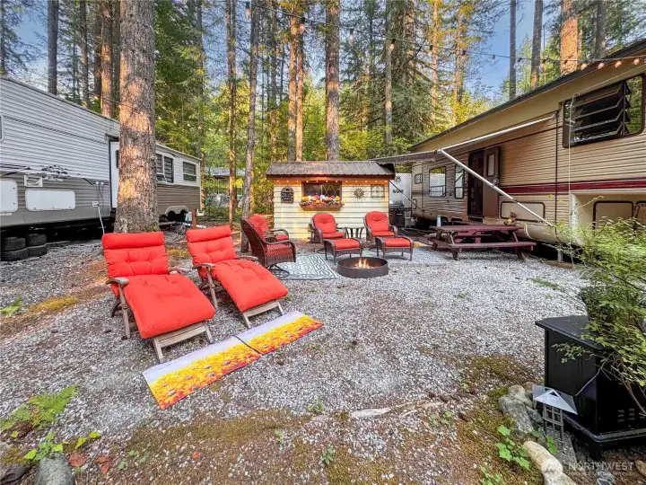Discover this well-maintained recreational property at The Glen at Maple Falls, designated for up to 120 days of use per year. The freshly painted interior provides a comfortable and efficient layout, set up to sleep four. The space is easy to enjoy as-is, making it a convenient option for immediate use without additional work. Outside, the property features a tidy, usable yard with room to relax or gather. A detached shed adds flexibility for storage or potential hangout space, depending on your needs. The lot is designed to be low maintenance while still offering functional outdoor living. Located within The Glen at Maple Falls, the community offers a wide range of amenities. Owners have access to two swimming pools, including one open year-round, along with a hot tub and sauna. Additional features include tennis and pickleball courts, two clubhouses, laundry and shower facilities, a library, trails, playgrounds, and gated entry with 24/7 security. This property is move-in ready and positioned for easy access to nearby outdoor recreation, including Mount Baker and surrounding areas. A straightforward option for those looking for a seasonal-use property with established amenities.