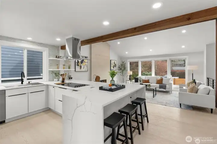Perfectly situated in the vibrant Ravenna community, this home has been beautifully modernized for 2026. From the light-filled vaulted ceilings to the rich hardwood floors, every detail radiates quality. The heart of the home is the sleek modern kitchen, where a generous waterfall island/peninsula creates a natural gathering spot. The primary bedroom offers a quiet escape with its own en-suite bath and walk-in closet. This home is as functional as it is beautiful, featuring a brand-new furnace and central A/C system for total seasonal comfort. Discover a vast lower-level suite—the perfect canvas for a sprawling lounge area, a cozy movie theater, or an airy home gym. Both the front and back yards are fully fenced, offering a private, secure space for play or gardening, anchored by a brand-new entertaining deck. Located blocks from top-rated schools, Dahl Playfield, and University Village, this turnkey home offers a premium lifestyle in a walker’s paradise.