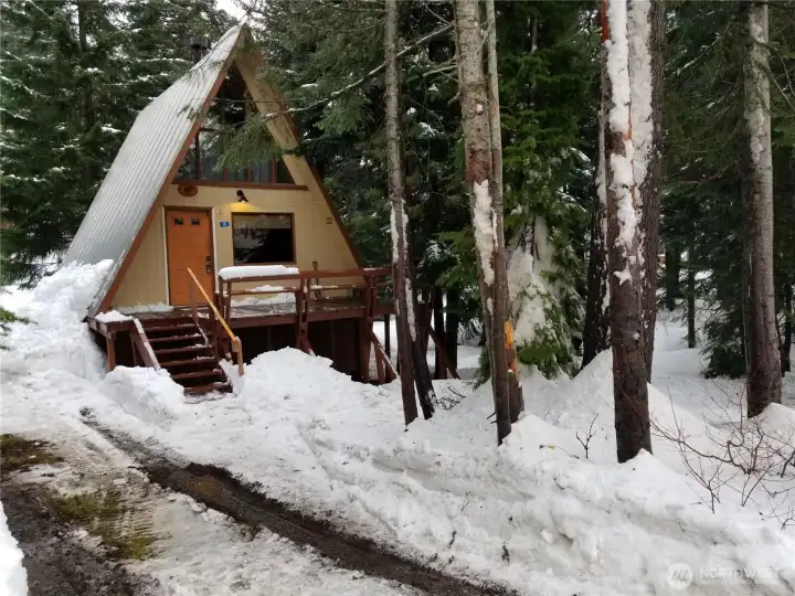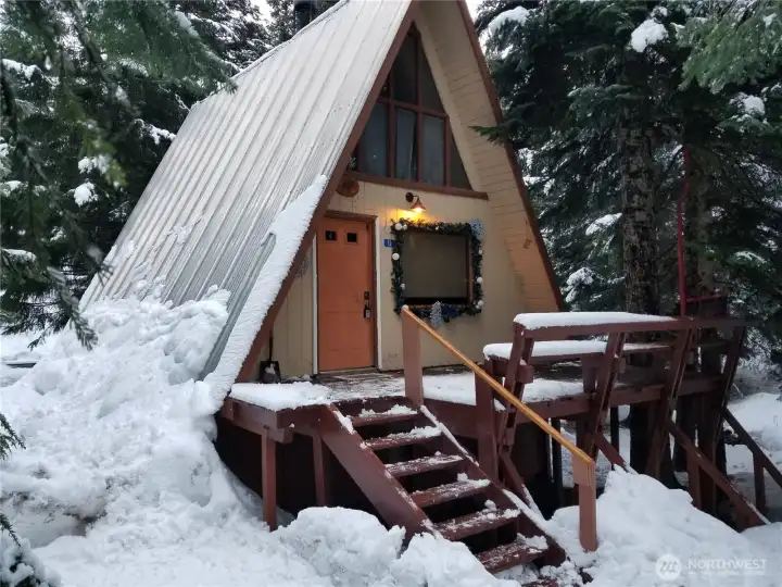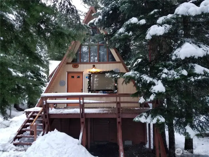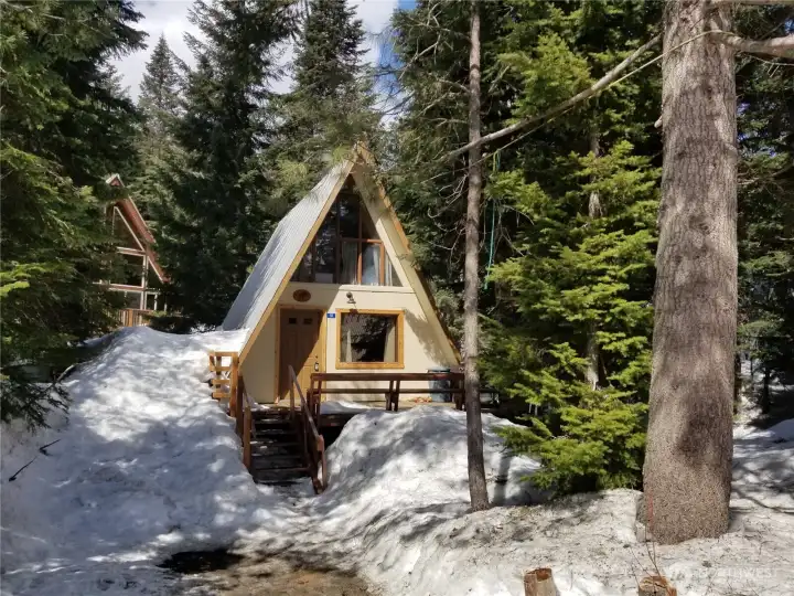 Own your piece of the mountain at Conifer Estates—an iconic 1966 A-frame cabin thoughtfully updated for modern comfort. This private retreat offers year-round recreation and relaxation in the heart of Snoqualmie Pass. Ski, hike, snowshoe, tube, mountain bike—or simply unwind. Spend your days exploring and your evenings by the fire pit making s’mores, then relax and repeat. Ideally located near Exit 53 and the ski areas this turnkey getaway comes fully furnished and ready to enjoy. The upper-level bedroom features a queen bed, with two twin beds in the loft—perfect for guests. Inside, you’ll find a classic mid-century fireplace, warm wood tongue-and-groove walls, and timeless alpine character. Step outside to a spacious deck featuring an original Ski Acres lift chair and BBQ. A cozy fire pit, and a peaceful babbling brook are just outside the cabin. Create new memories in Snoqualmie Pass with no rental restrictions. This proven, successful vacation rental generates solid income (details available), offering the perfect balance of personal escape and investment opportunity. Your mountain getaway—and income-producing retreat—awaits